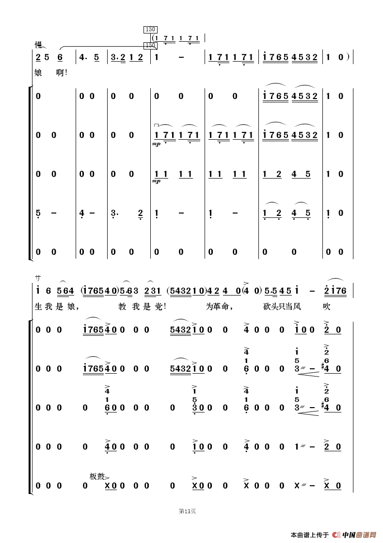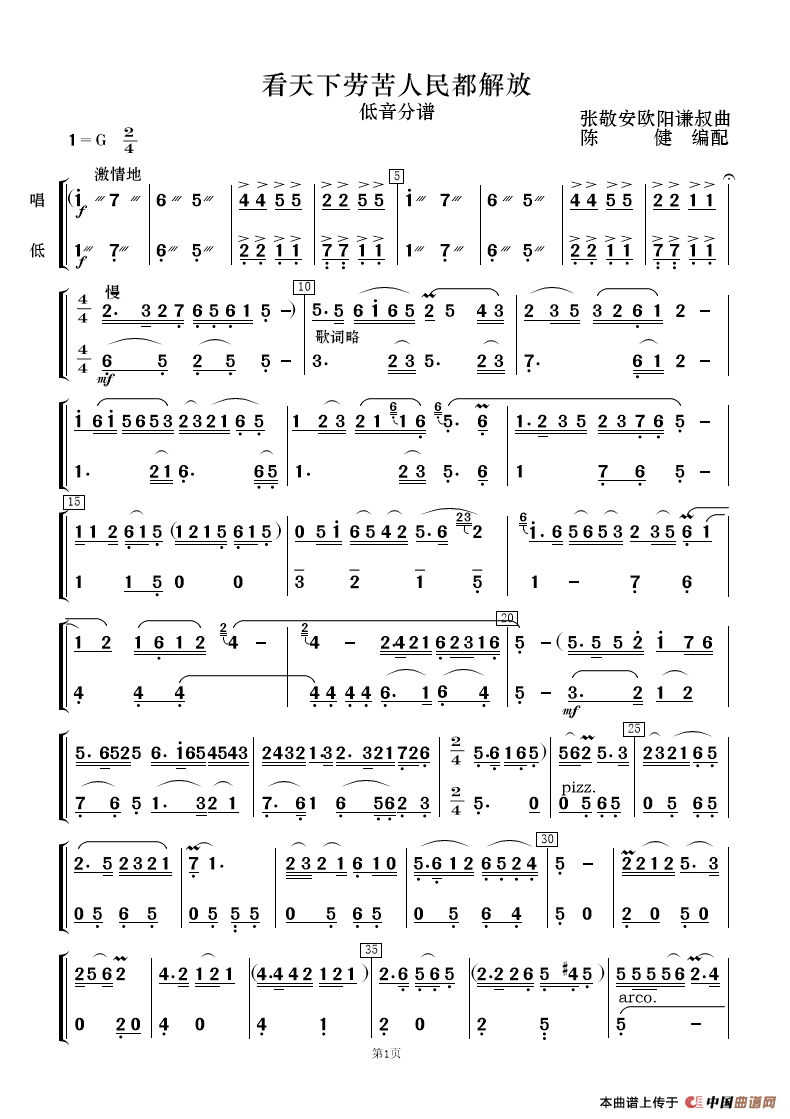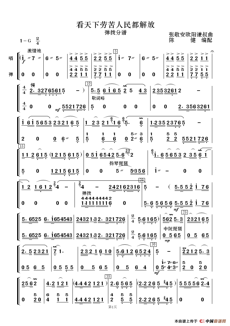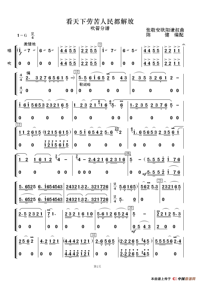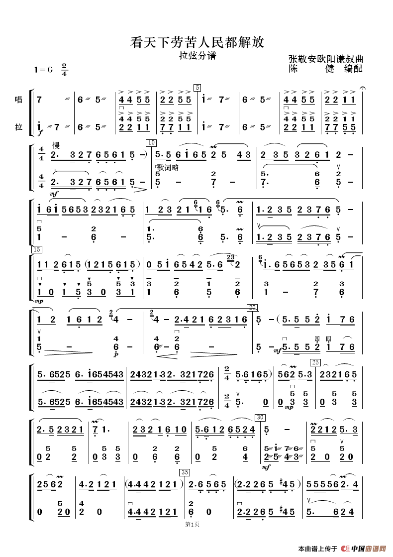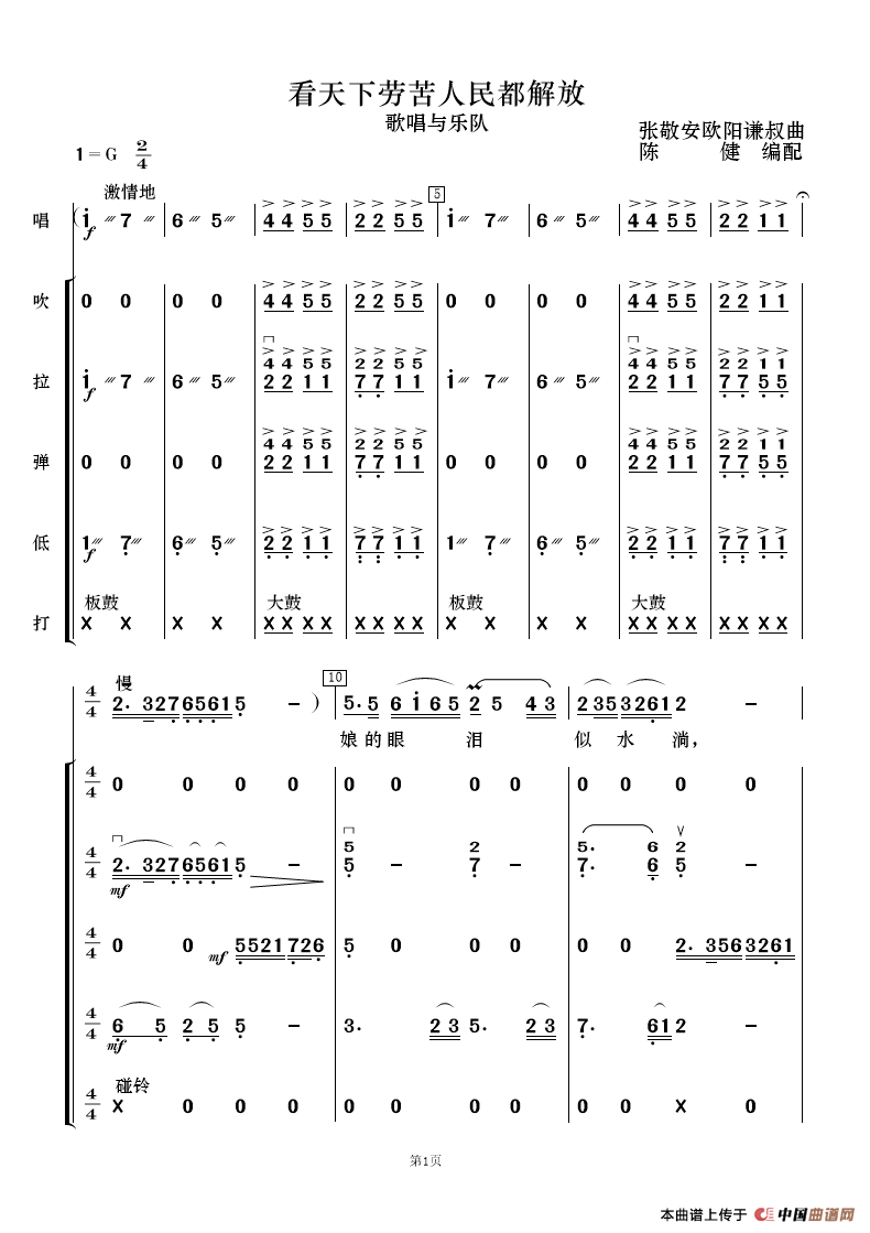 看天下劳苦人民都解放(歌唱与乐队)相关五线谱