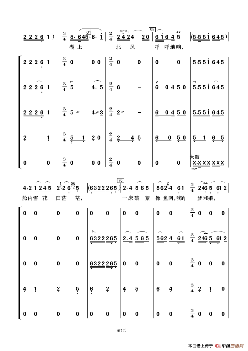 天上有没有北大荒(混声无伴奏合唱、五线谱)