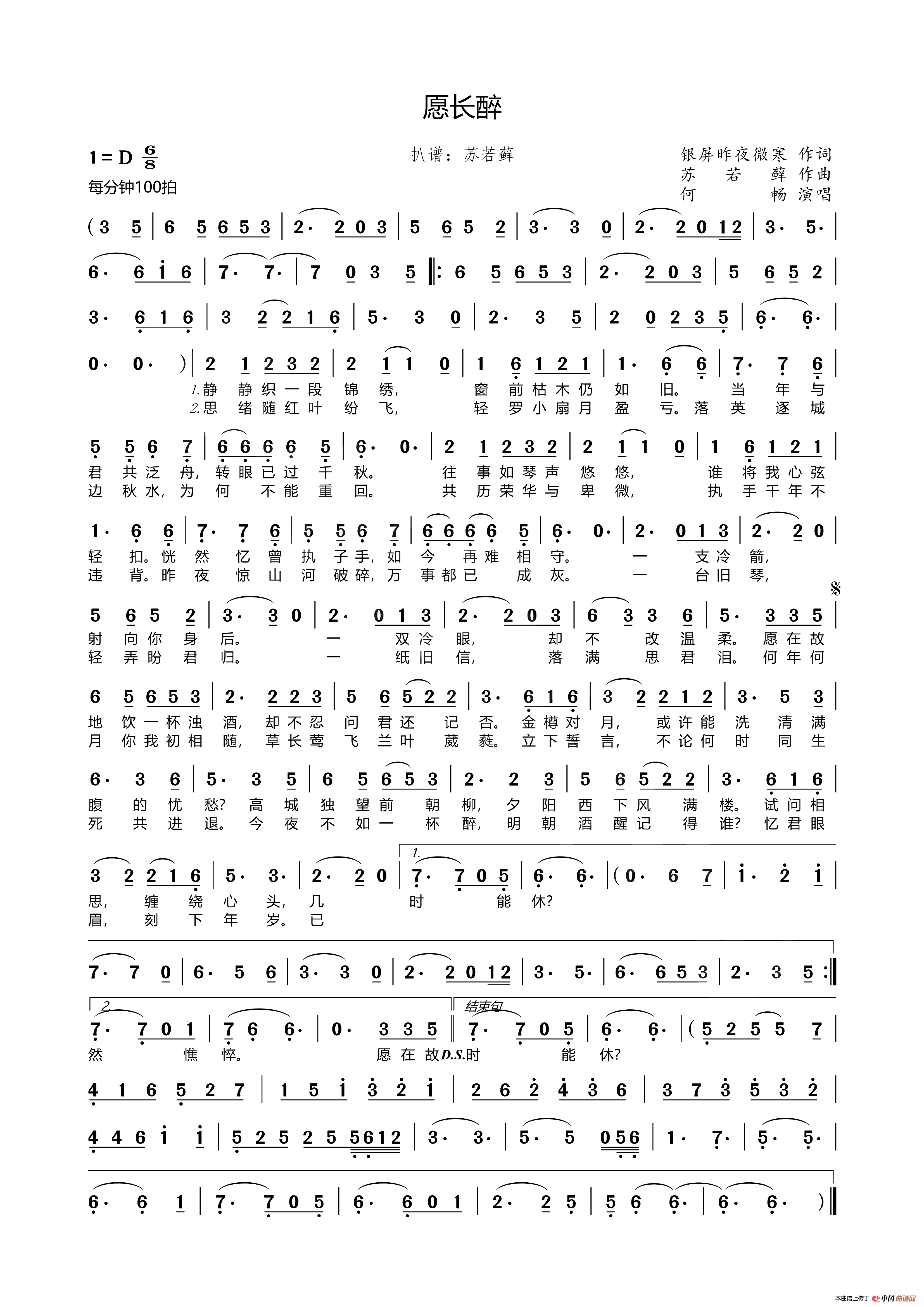 愿长醉相关五线谱