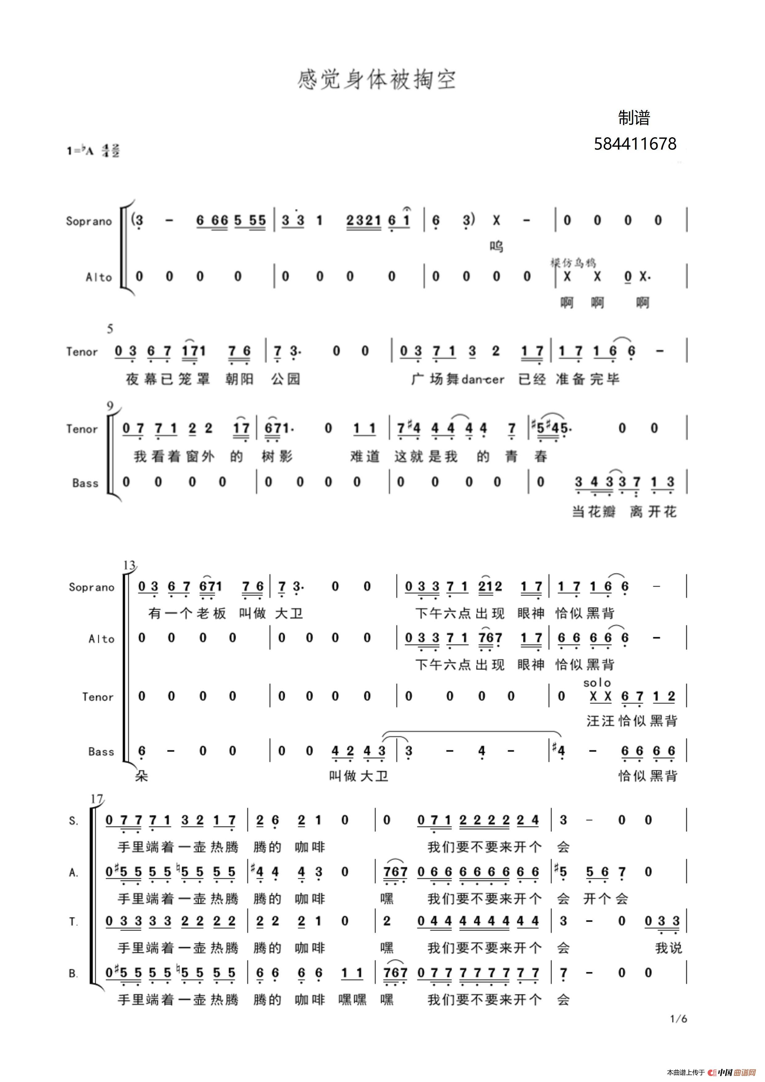 感觉身体被掏空合唱简谱相关五线谱