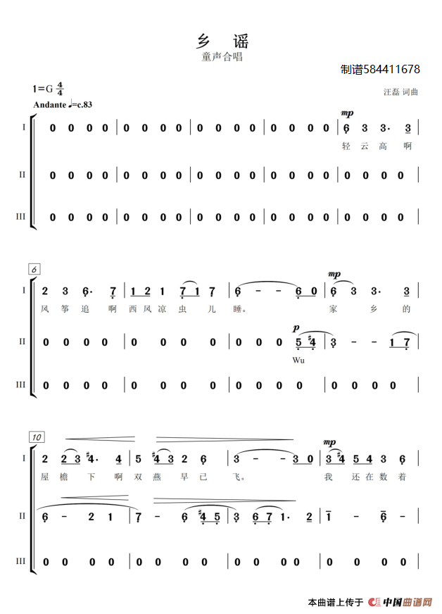 乡谣童声合唱谱