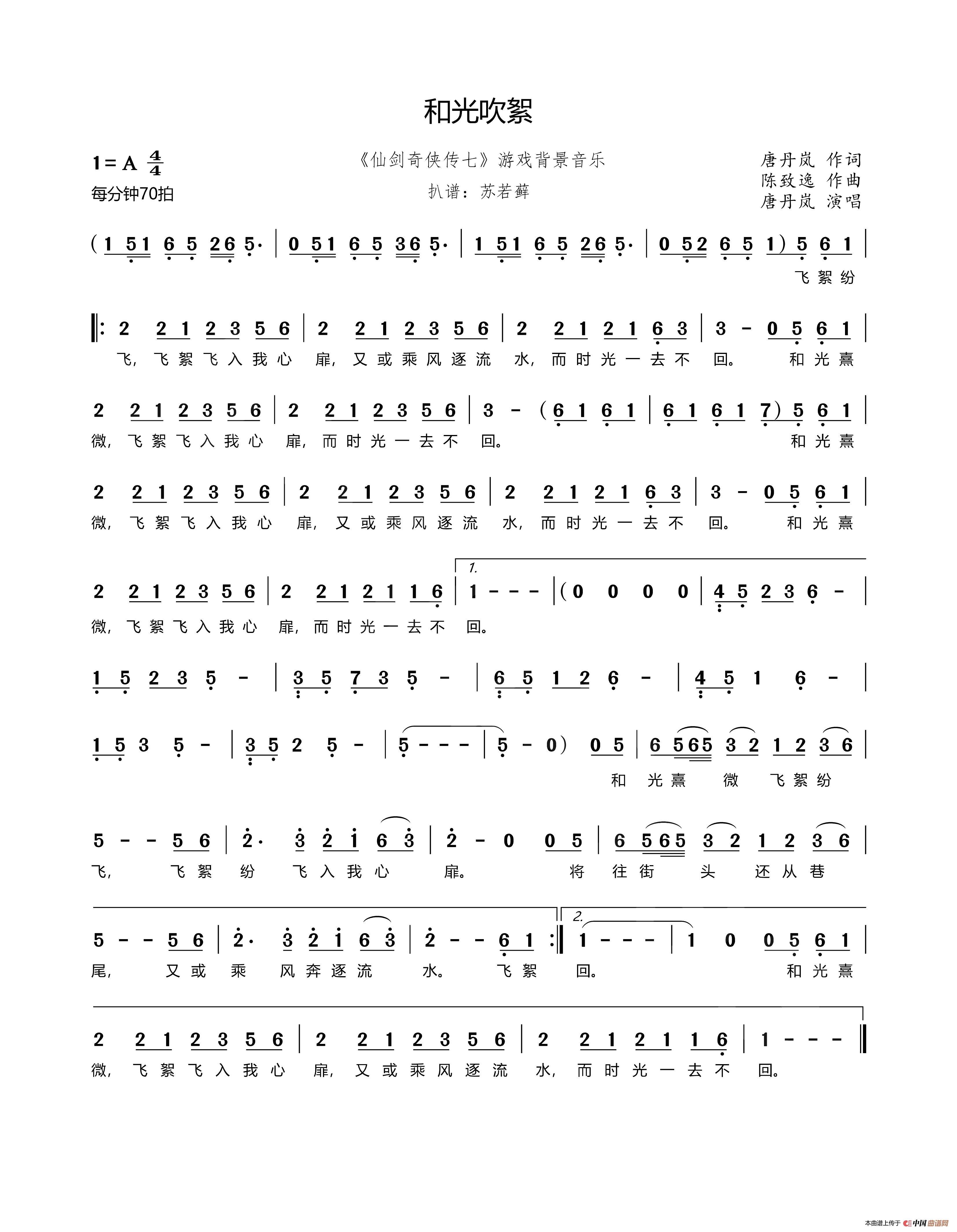 陈致逸曲谱推荐空雪独立寒江画情(《画皮2》宣传主题曲)梦留别秋风知月明巫行林岫(《仙剑奇侠传七》游戏背景音乐)水榭藏锋(笛箫谱)相守(《仙剑奇侠传七》游戏主题歌曲)神女劈观·唤情(正谱)断桥离情金风玉露青龙永夜(天涯明月刀青龙会主题曲)原神主题曲(长笛与钢琴)剑指苍天(《仙剑奇侠传七》游戏主题歌曲)江山行歌
