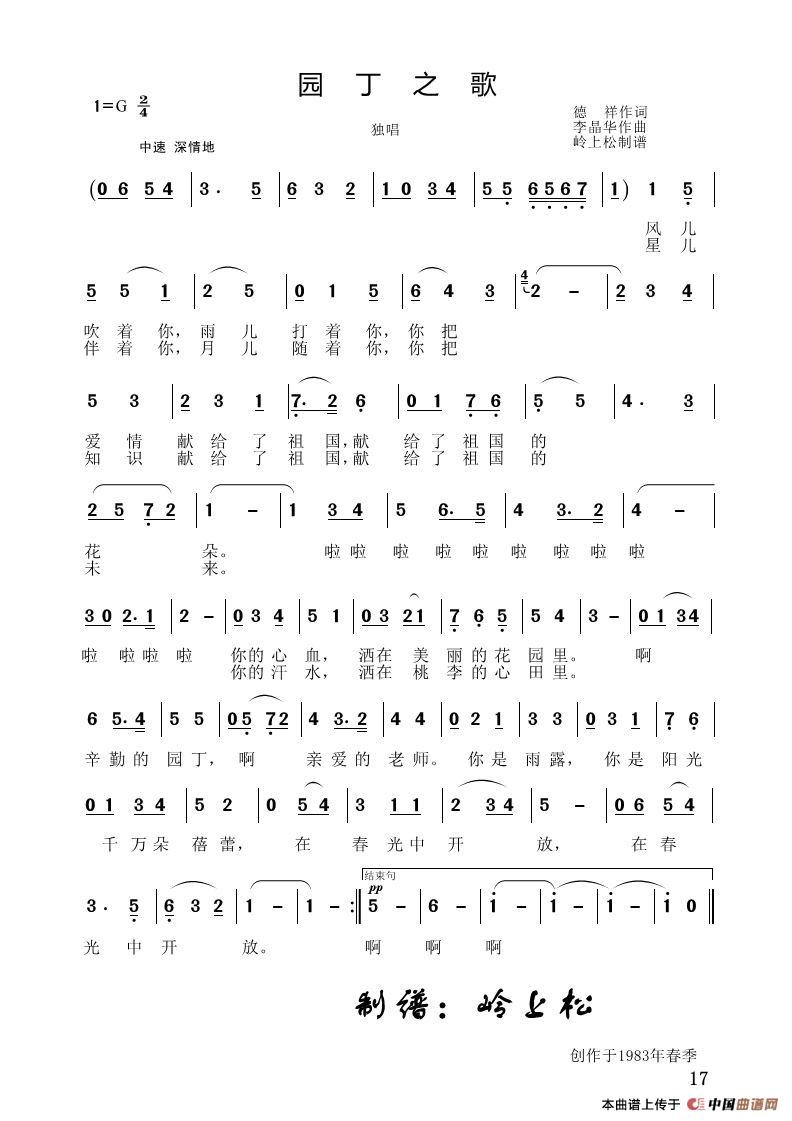 李晶华曲谱推荐安全年之歌(李晶华专辑)妈妈,为我们祝福吧(李晶华专辑)你给草原带来知识和力量(李晶华专辑)我们爱少先队旗(李晶华专辑)五泉之恋(李晶华专辑)鄂温克人歌唱共产党(李晶华专辑)雷锋叔叔对我晓(李晶华专辑)兴安岭风情(李晶华专辑)共产党员之歌(李晶华专辑)祖国·我愿为你燃烧(李晶华专辑)我爱爸爸的矿灯(李晶华专辑)生命·母爱·白云·蓝天(李晶华专辑)煤城小城又黄昏(李晶华专辑)我的家乡在呼伦贝尔大草原(李晶华专辑)小草绿了(李晶华专辑)林城之歌(李晶华专辑)安安全全是永恒的歌(李晶华专辑)矿灯姑娘的歌(李晶华专辑)献给老师的歌(李晶华专辑)念奴娇(李晶华专辑)