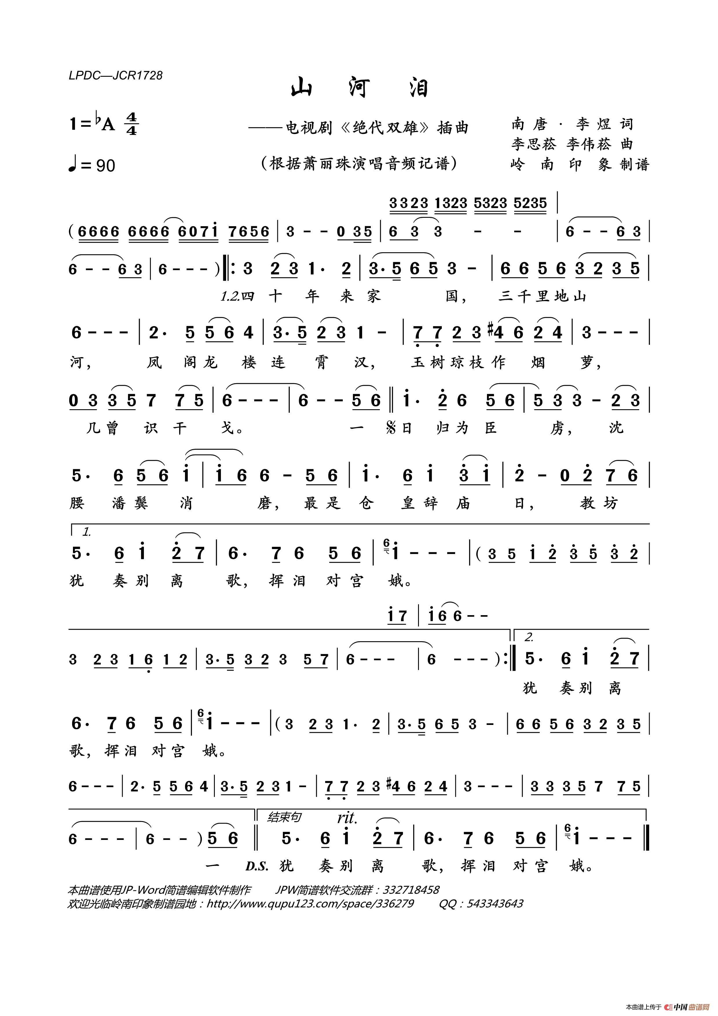 山河泪(电视剧《绝代双雄》插曲)相关五线谱