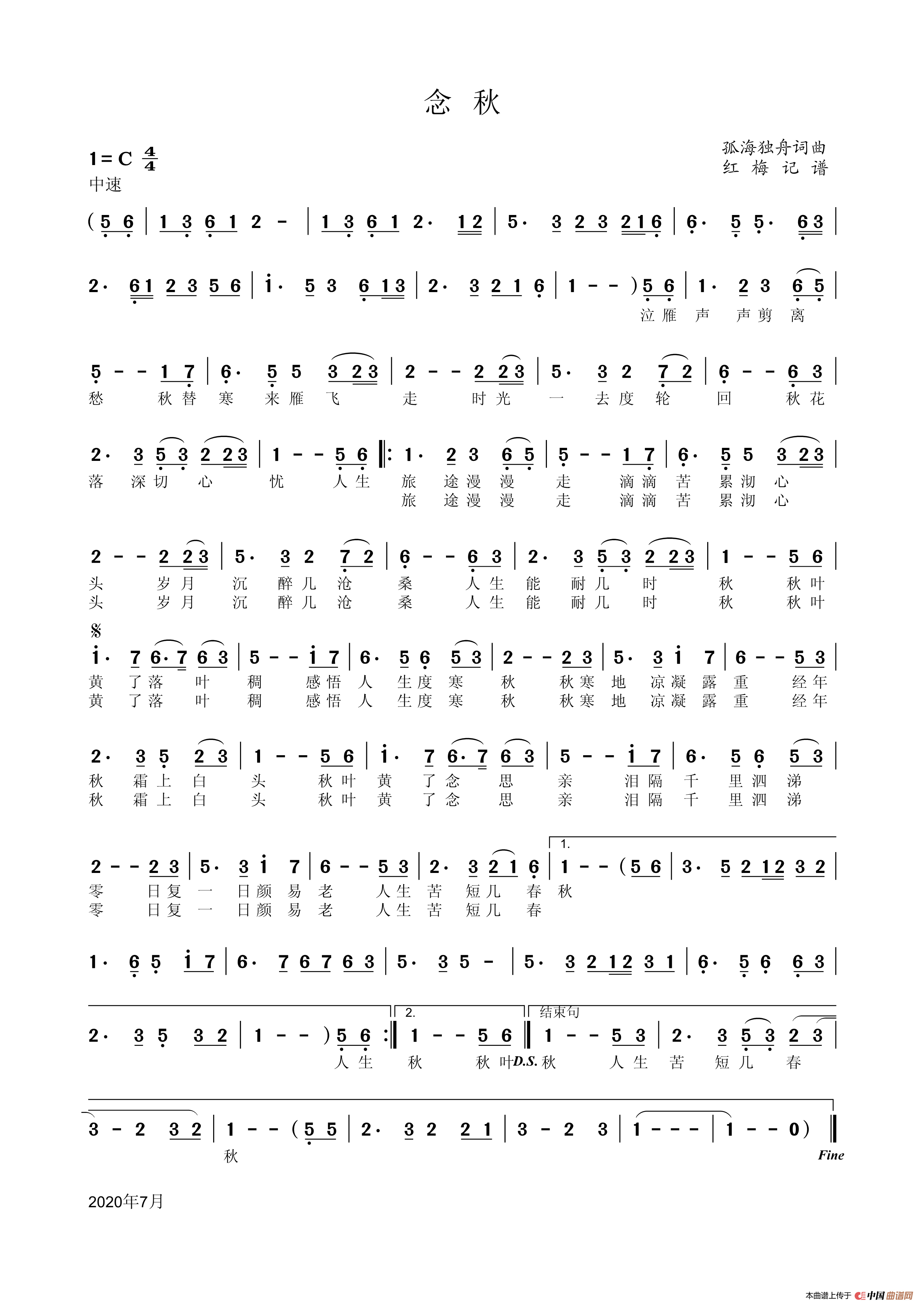 念秋相关五线谱