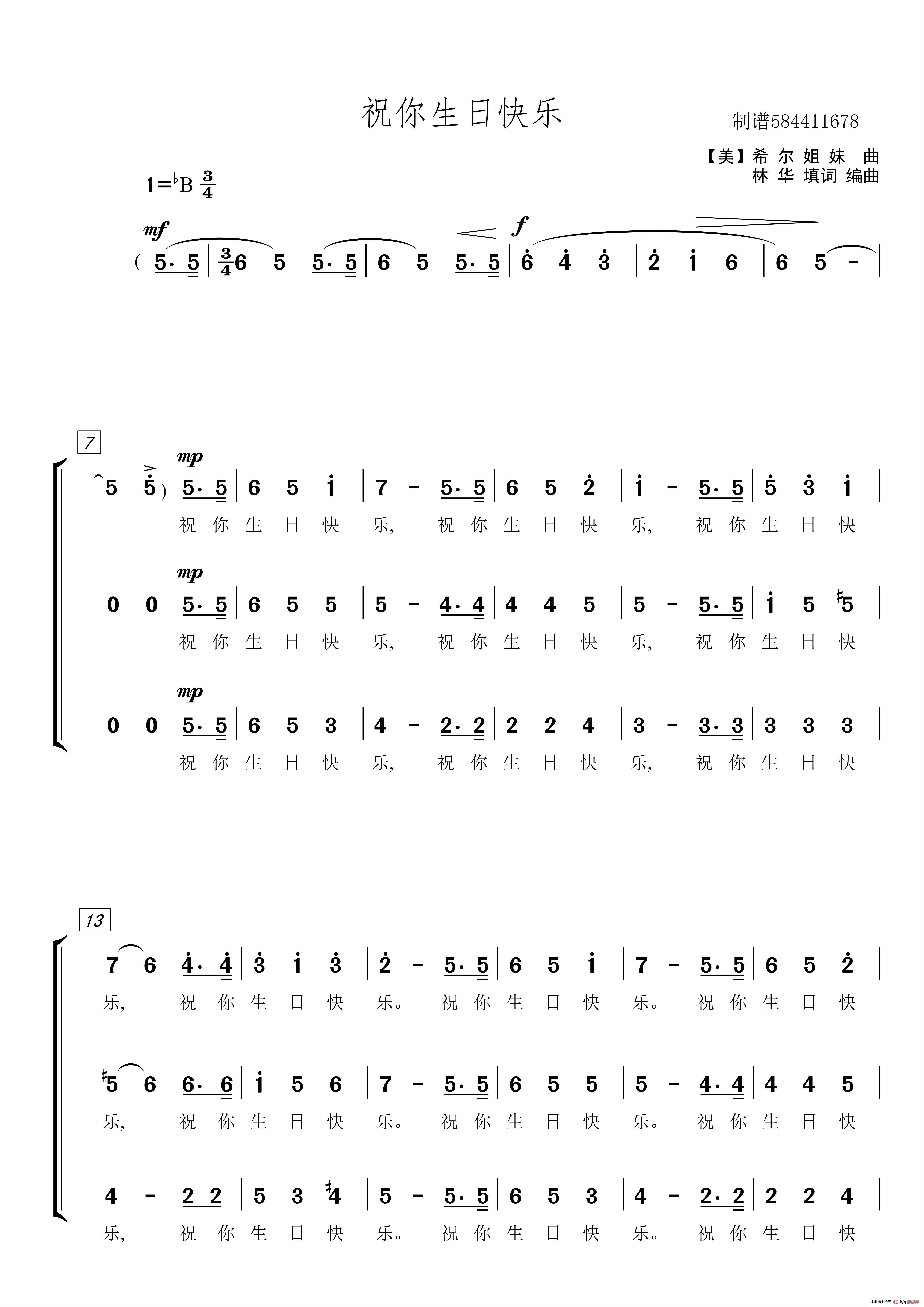 祝你生日快乐合唱简谱