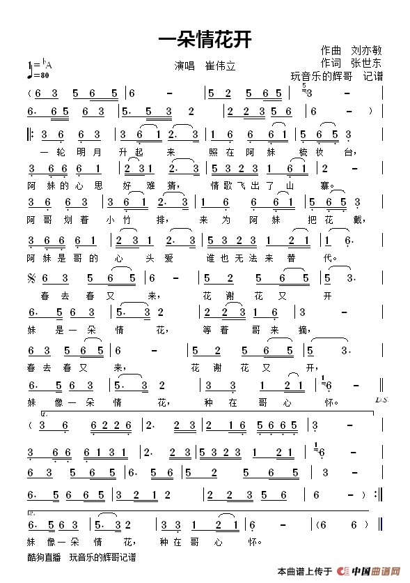 一朵情花开(崔伟立)相关五线谱