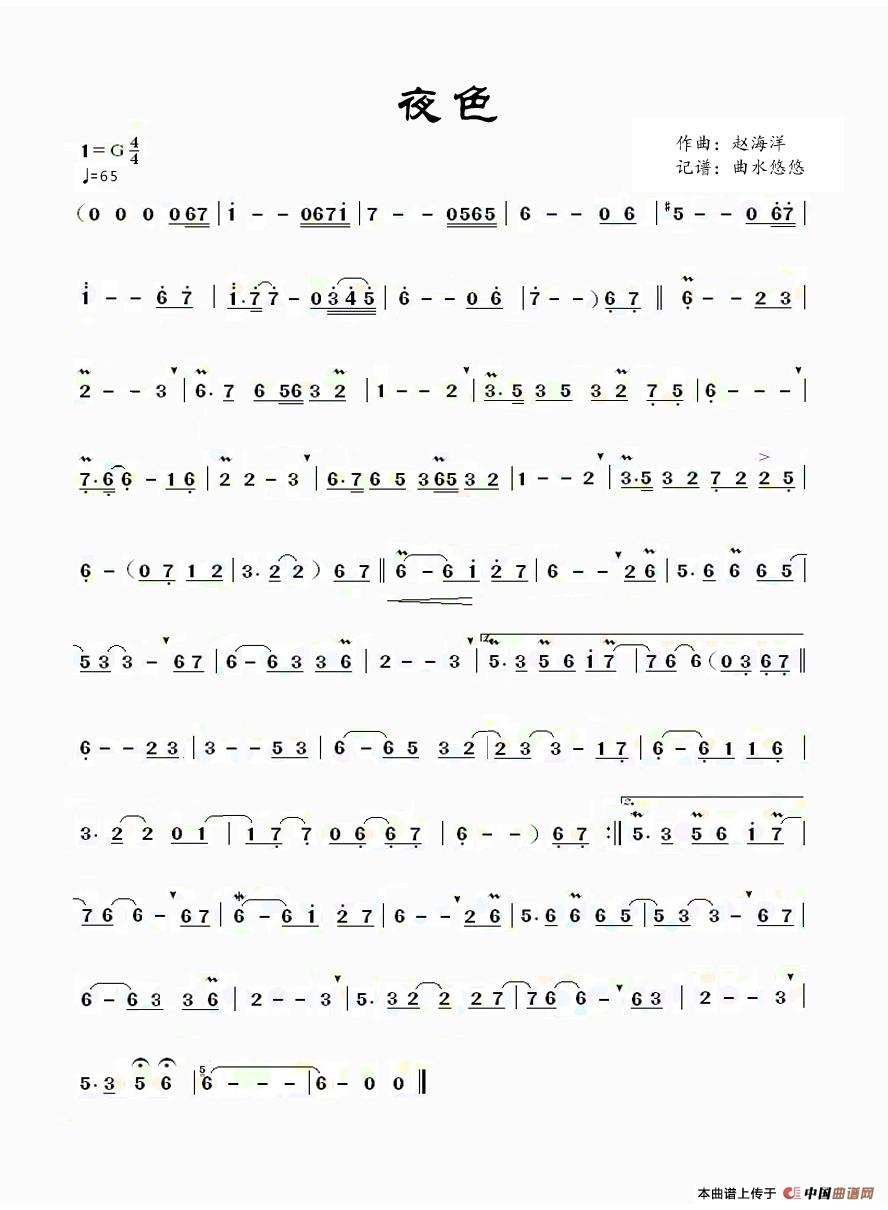 夜色(箫曲)相关五线谱