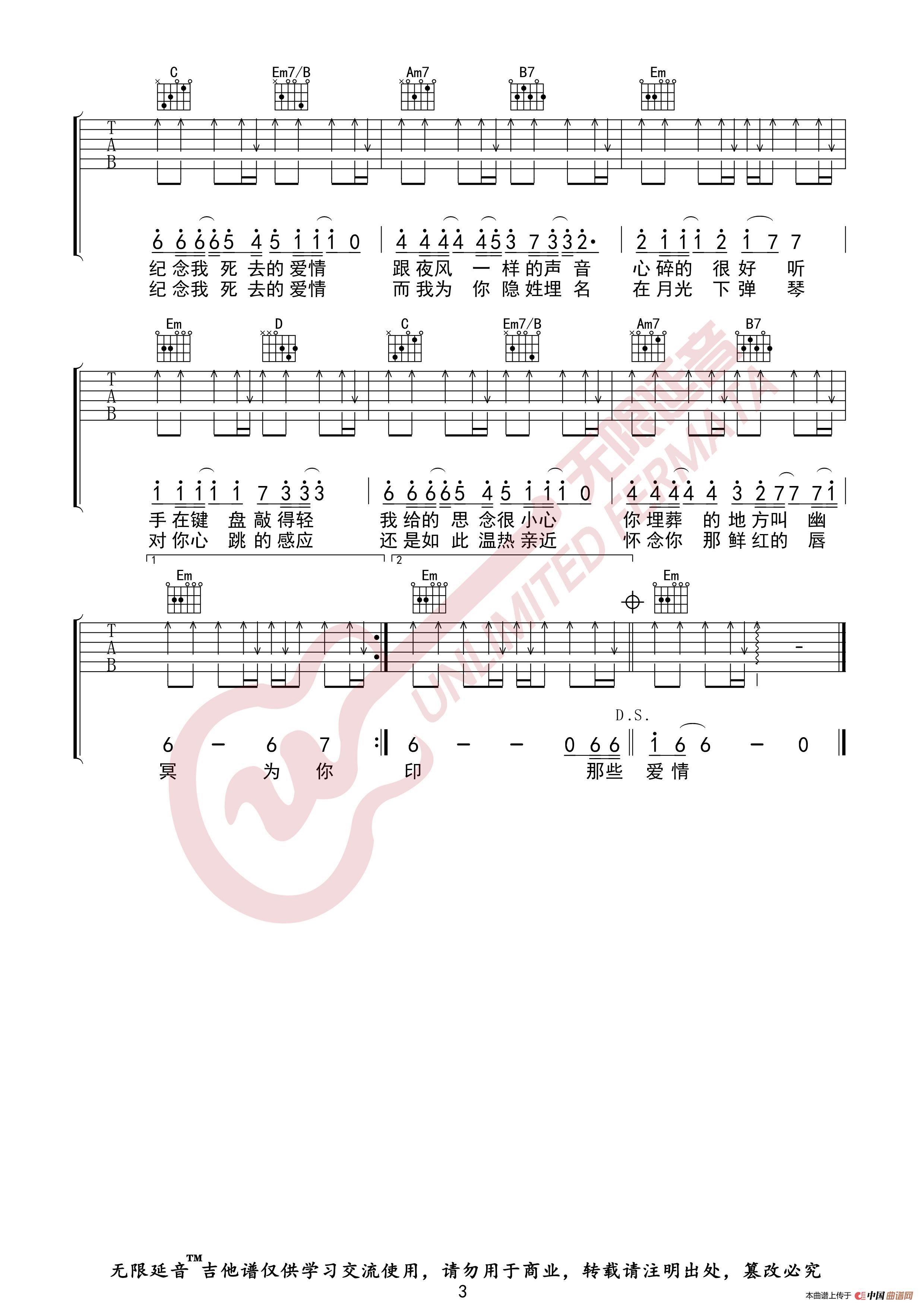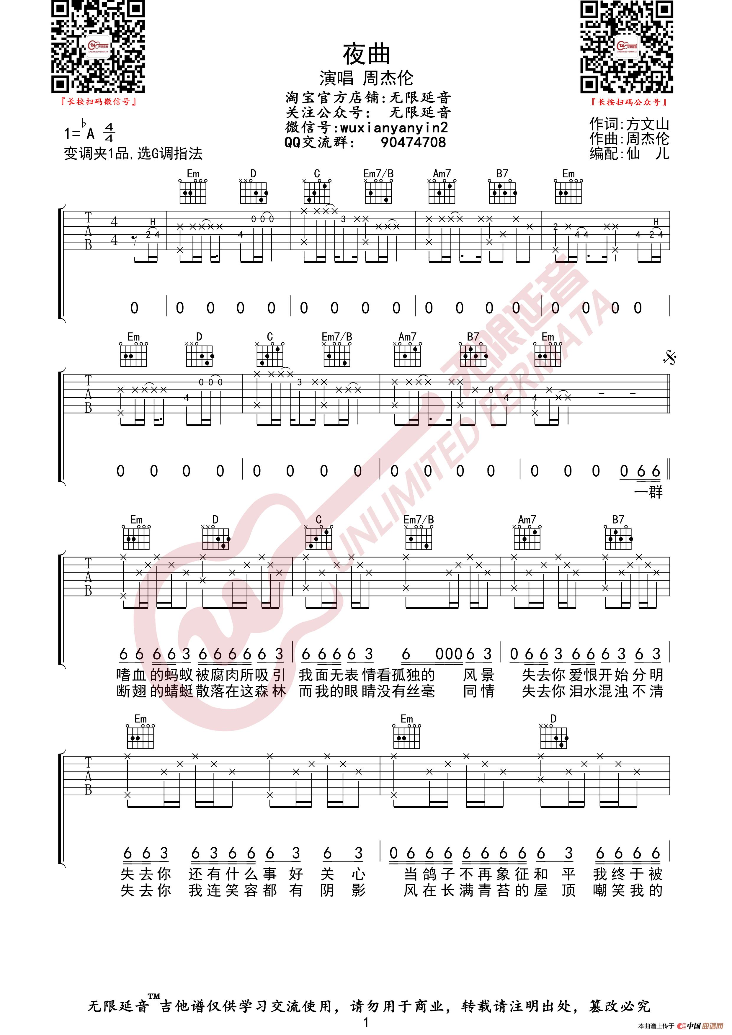 周杰伦 夜曲 吉他谱(无限延音编配)