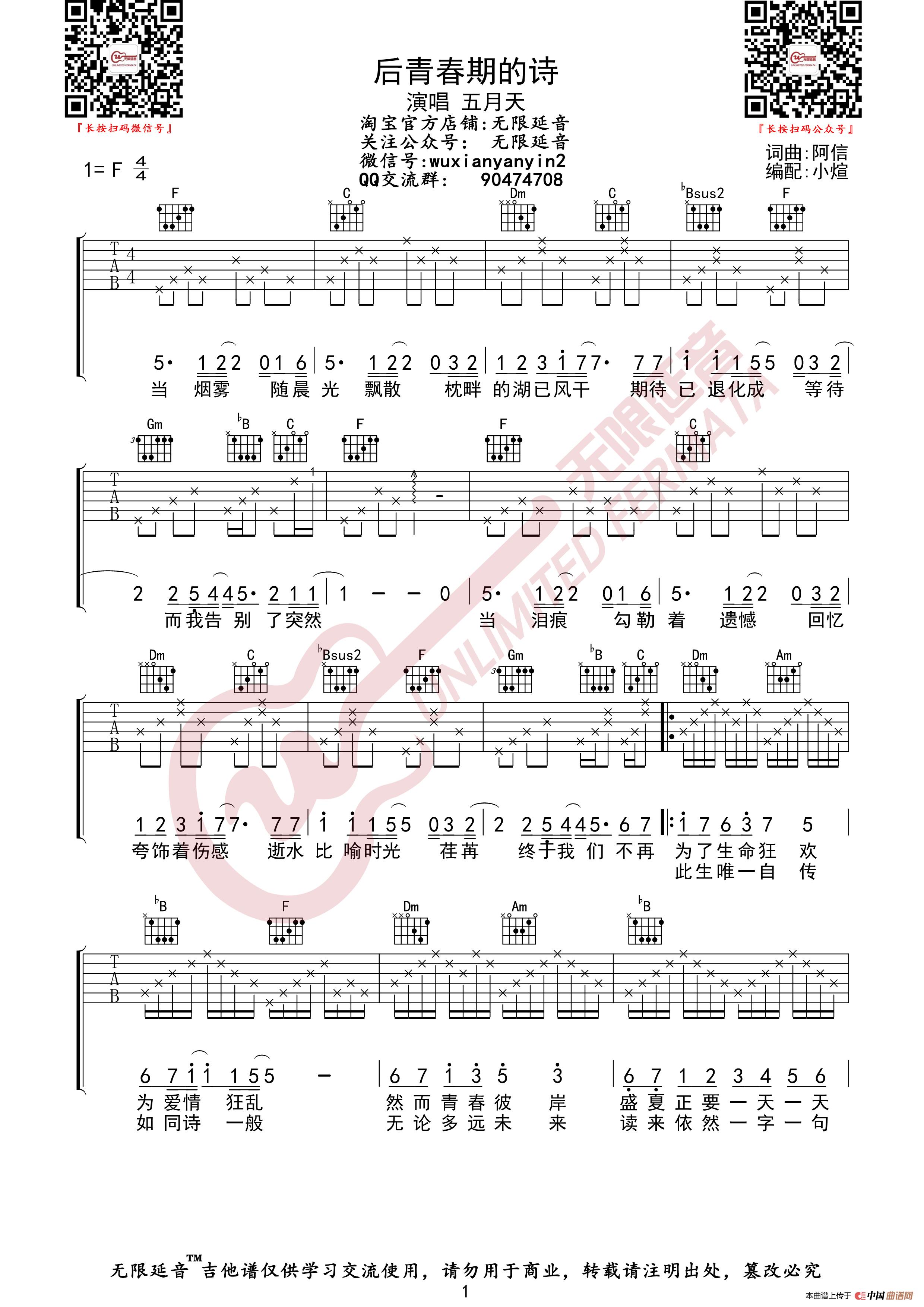 五月天 后青春期的诗 吉他谱(无限延音编配)相关五线谱