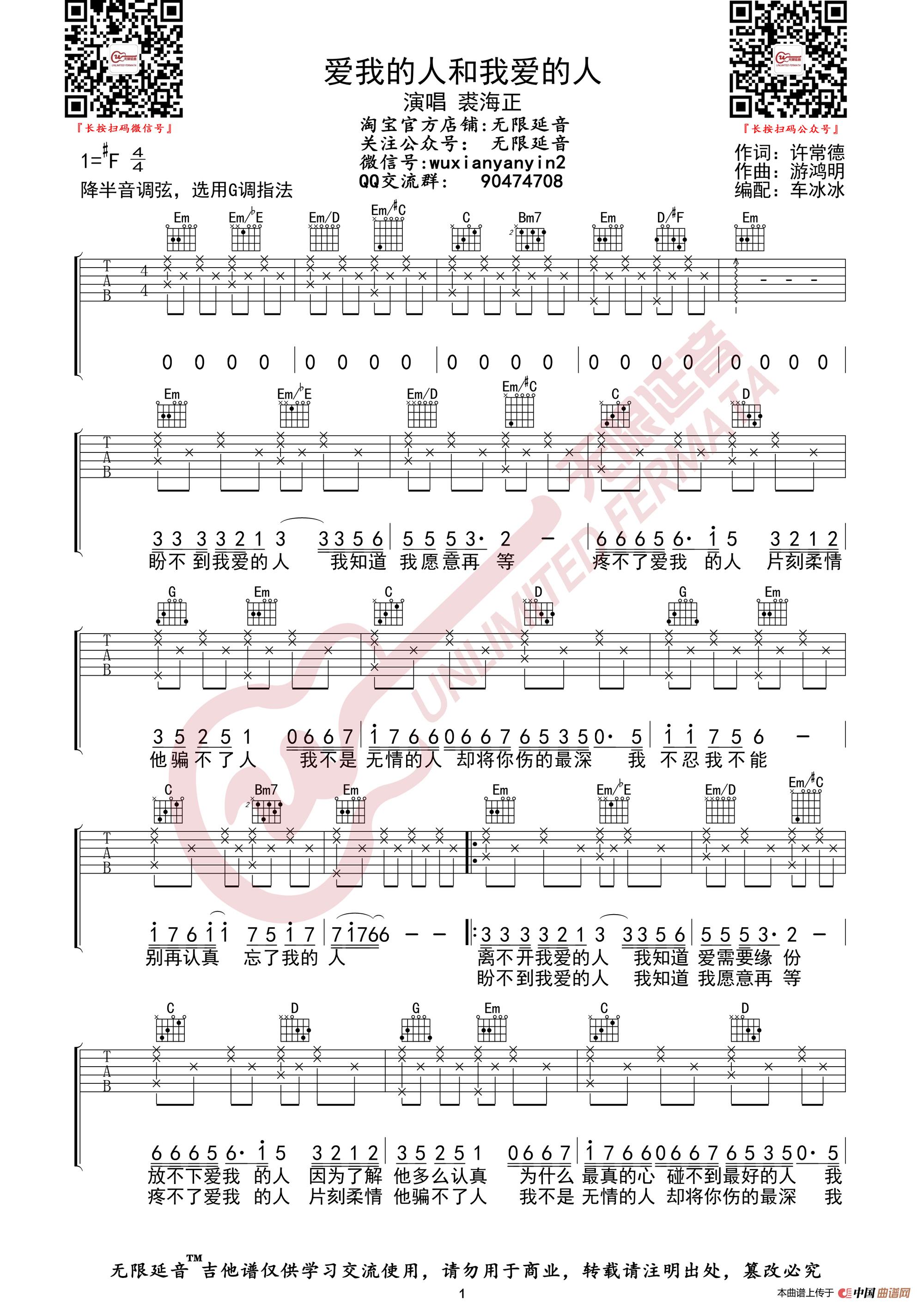 裘海正 爱我的人和我爱的人 吉他谱(无限延音编配)相关五线谱