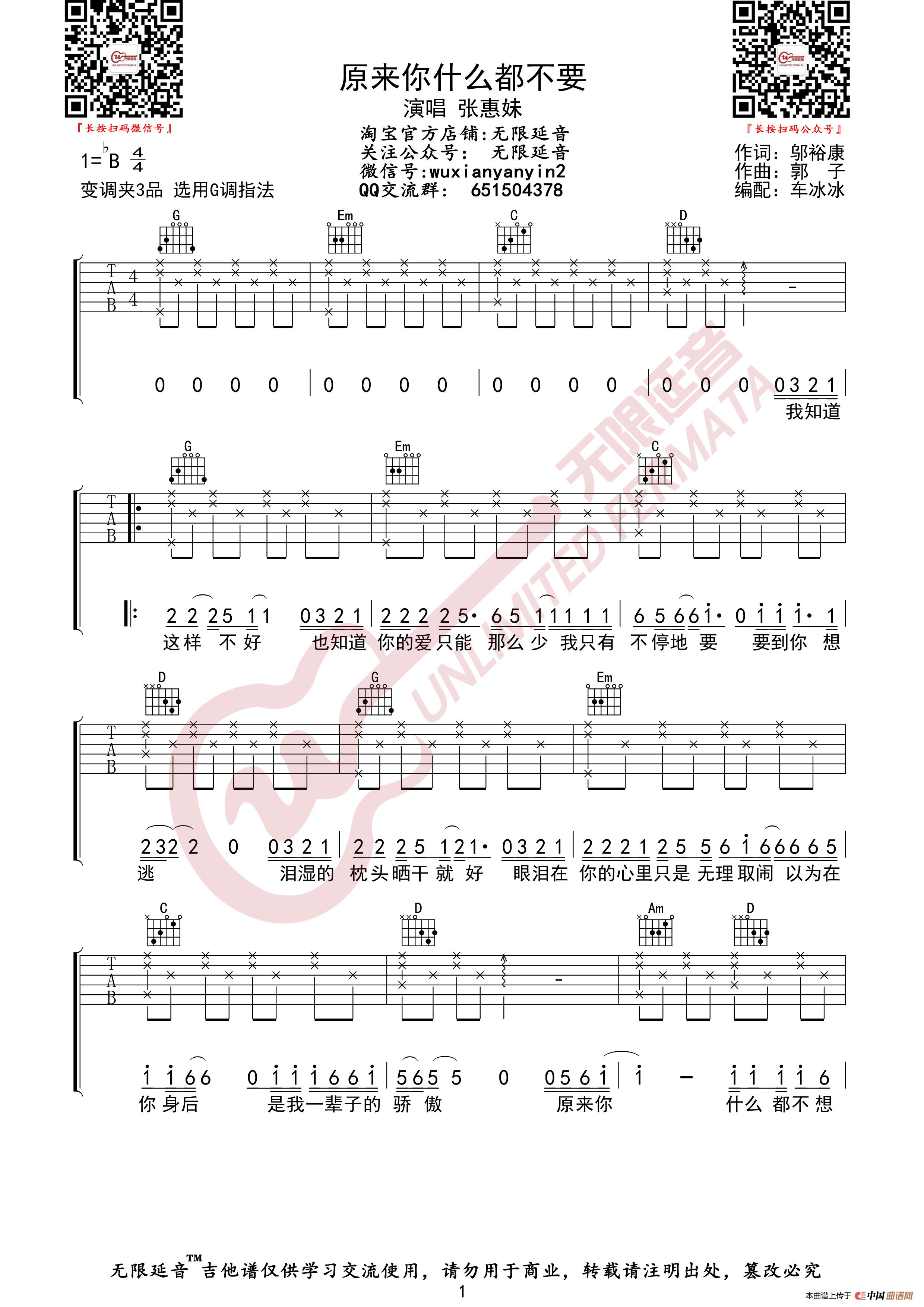 张惠妹 原来你什么都不要 吉他谱(无限延音编配)相关五线谱