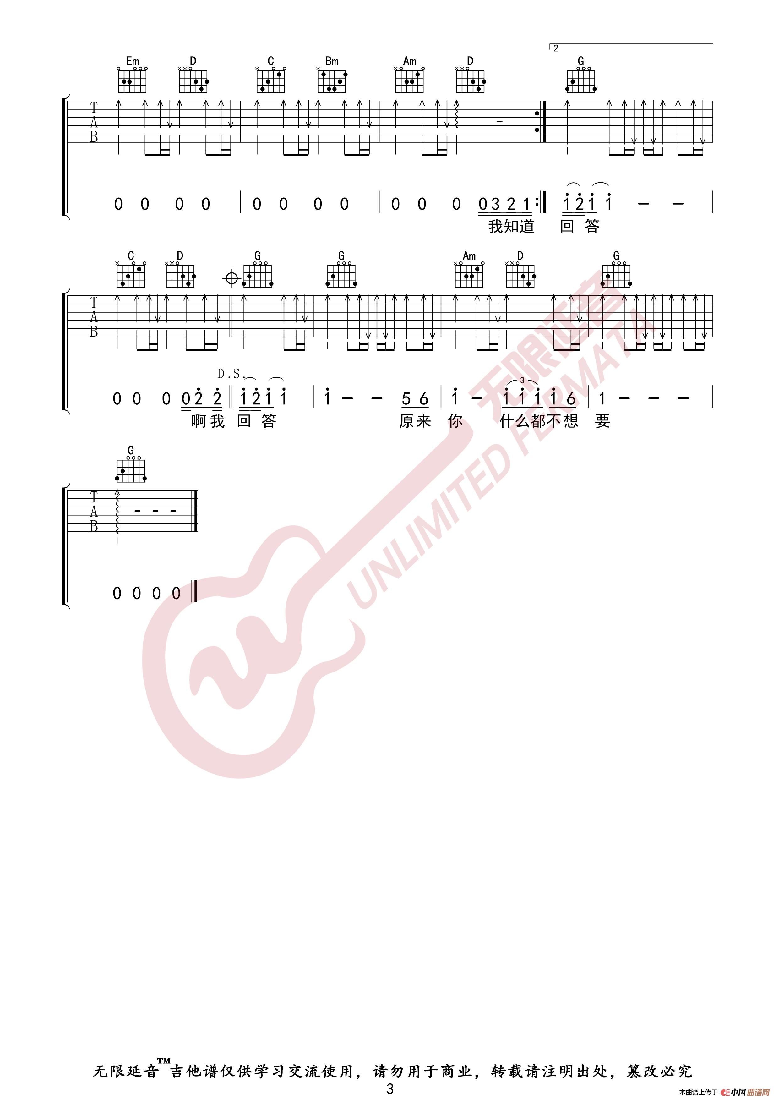 张惠妹 原来你什么都不要 吉他谱(无限延音编配)