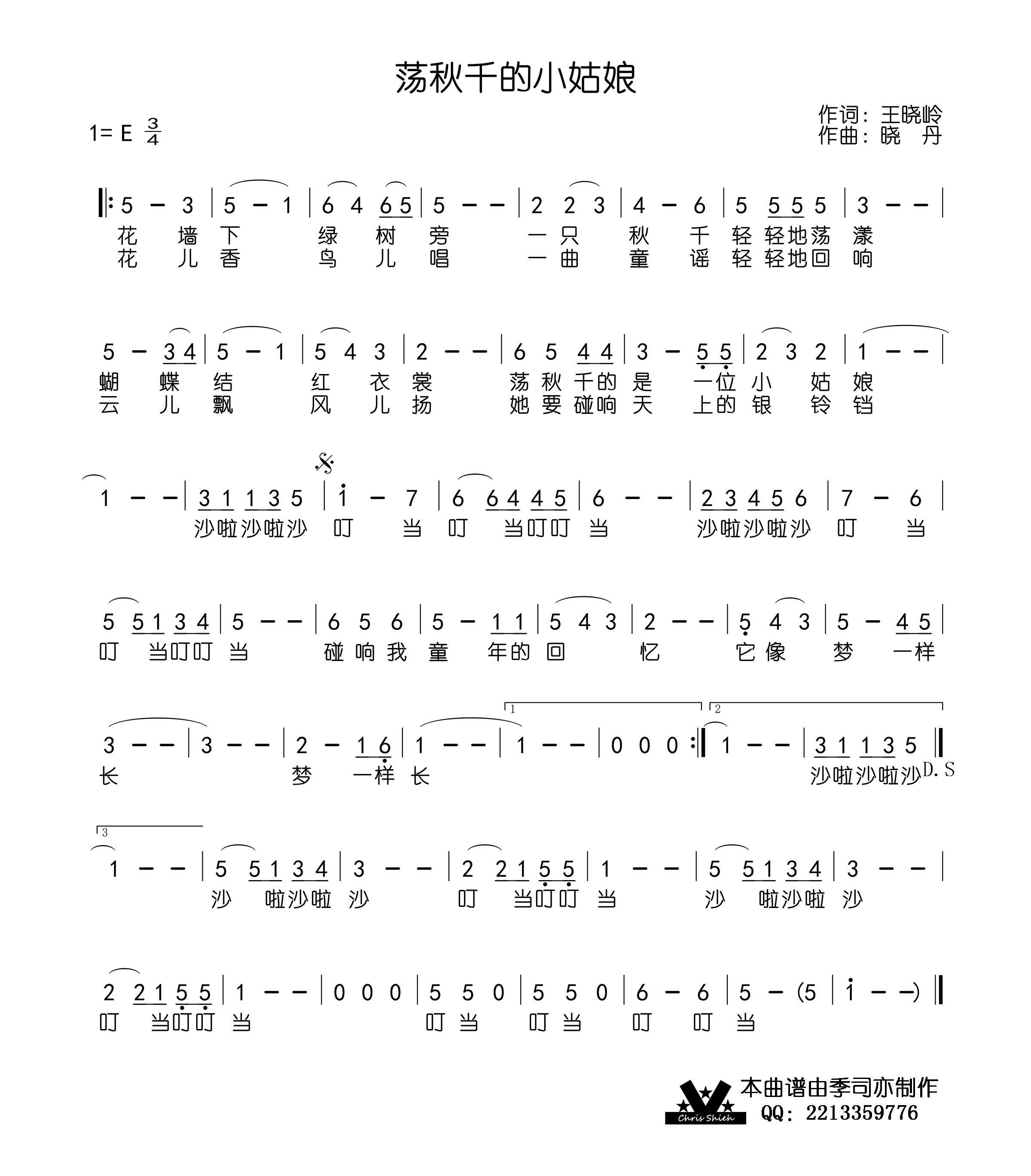晓丹曲谱推荐西湖小姑娘阳光下的孩子(张名河词 晓丹曲)我家住在漓江边美丽小天使美丽小天使(儿歌)采一束鲜花努尔哈赤之歌采一束鲜花嫦娥奔月(李幼容词 晓丹曲)我们来到节日的广场五色花红小鬼荷花童子猴子捞月亮(魏德泮词 晓丹曲)漂亮的套娃采一束鲜花幸福格桑花(李众词 晓丹曲)萨拉姆,天山的花快乐的小太阳(合唱)我爱我家(赵铁民词 晓丹曲)