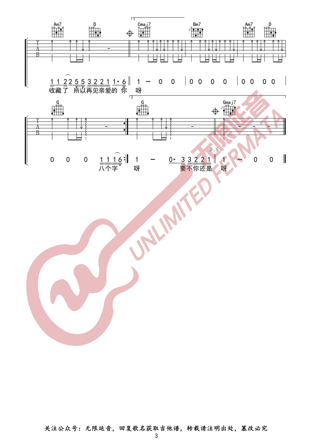 周杰伦 我不配 吉他谱(无限延音编配)