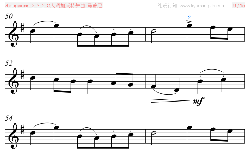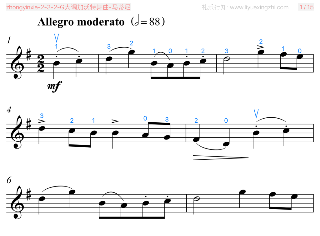 G大调加沃特舞曲(小提琴)相关五线谱