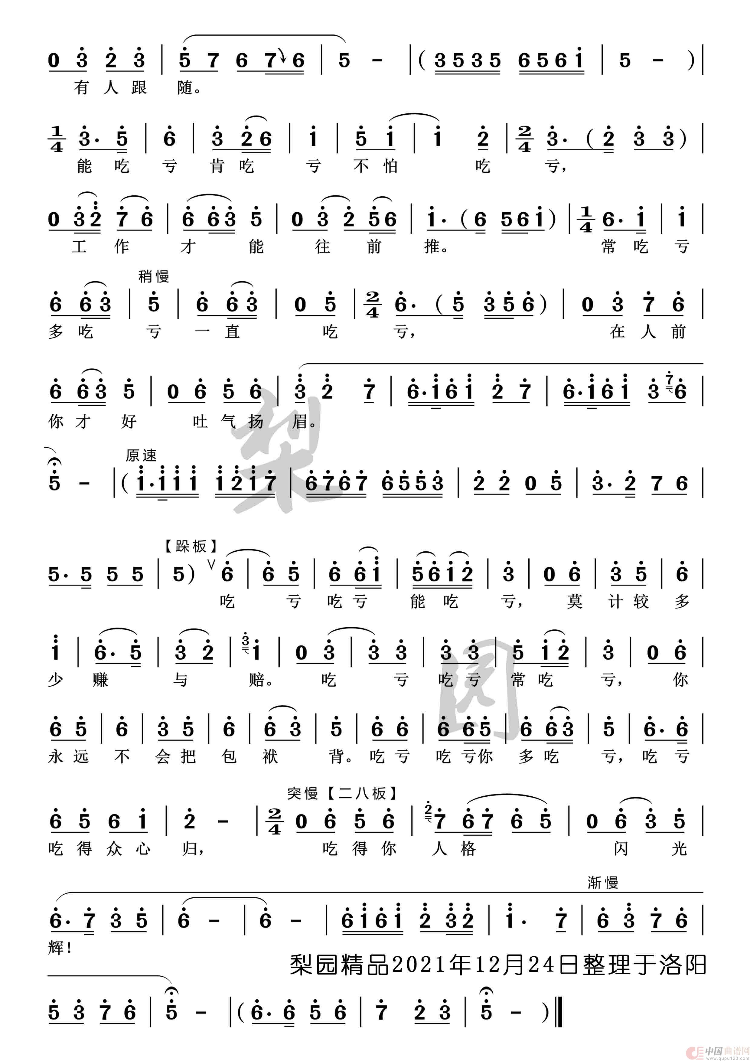 当干部就应该能吃亏(豫剧《村官李天成》选段)相关五线谱