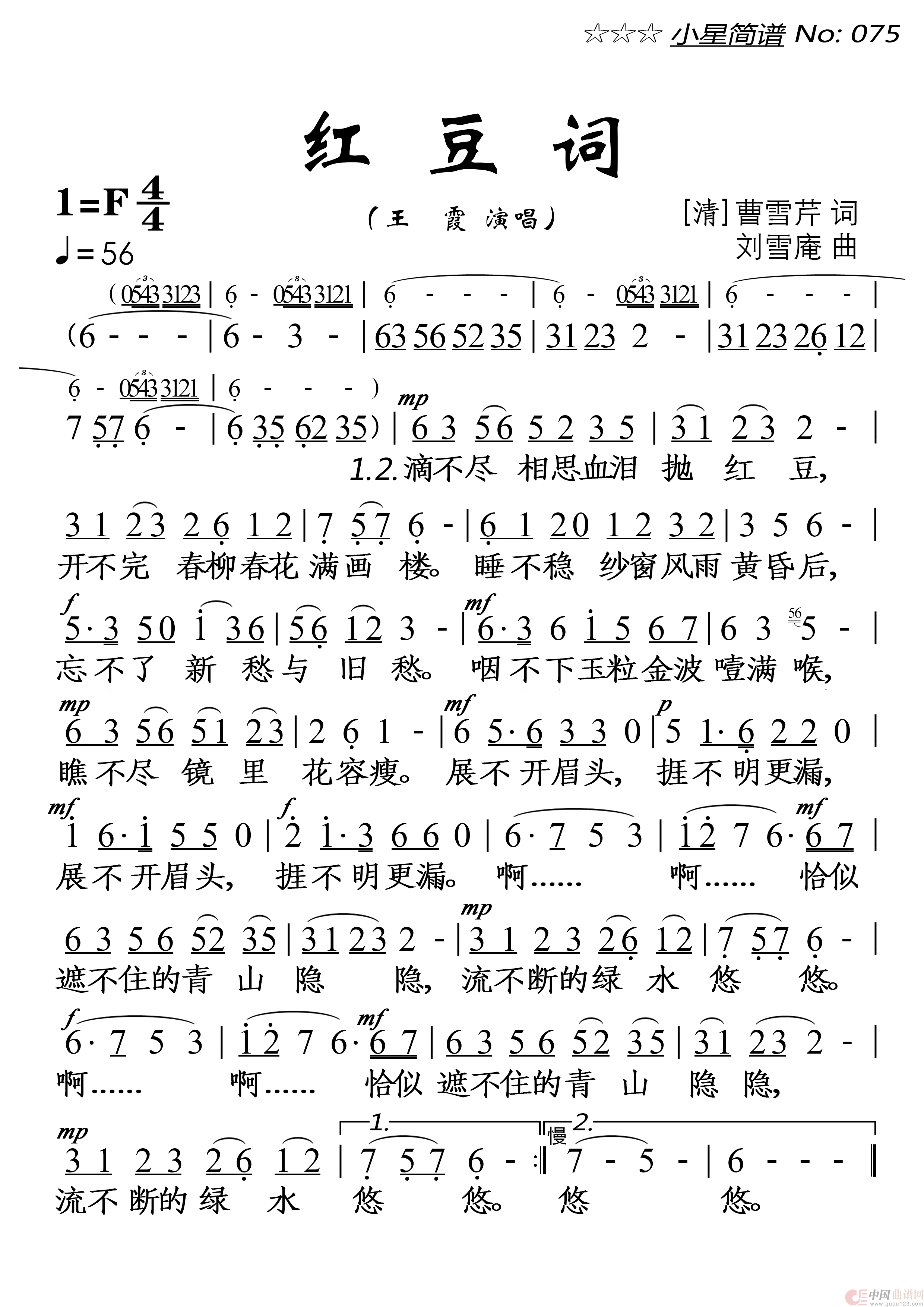 刘雪庵曲谱推荐雪花飞(刘雪庵词曲 五线谱)何日君再来(老人适用)游击队歌(徐绍昌词 刘雪庵曲、五线谱)长城谣(电影《关山万里》主题曲)长城谣(潘孑农词 刘雪庵曲、正谱)忆后湖(正谱)翻身舞曲(刘雪庵曲、五线谱)相见欢(李煜词 刘雪庵曲、正谱)春夜洛城闻笛([唐]李白词 刘雪庵曲)飞雁战歌(王绍清词 刘雪庵曲、正谱)流亡(流亡三部曲之二、五线谱)出征歌(永英词 刘雪庵曲、五线谱)淮南民谣(正谱)飘零的落花(正谱)追寻(许建吾词 刘雪庵曲)庆翻身(五线谱)小奏鸣曲(刘雪庵作曲版)何日君再来长城谣(老人适用)