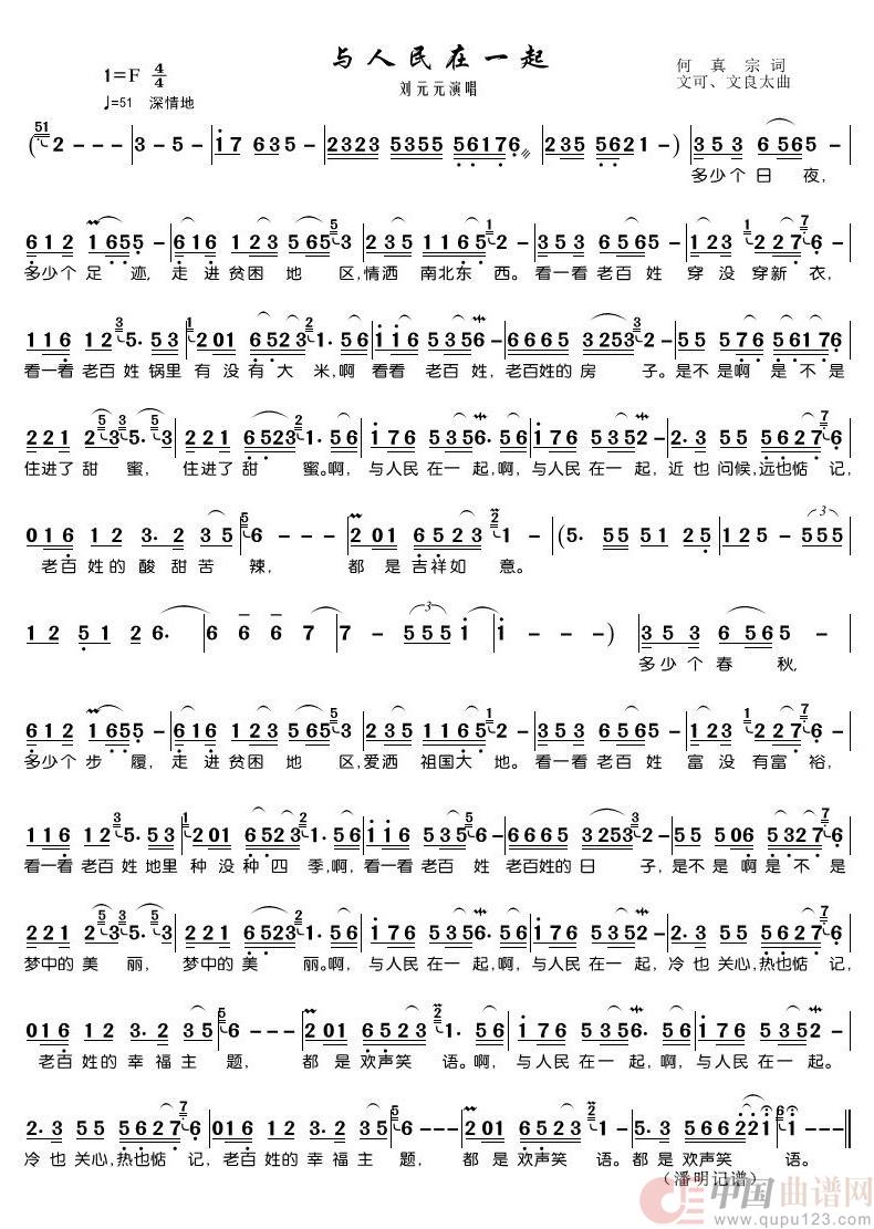与人民在一起(刘元元演唱)相关五线谱