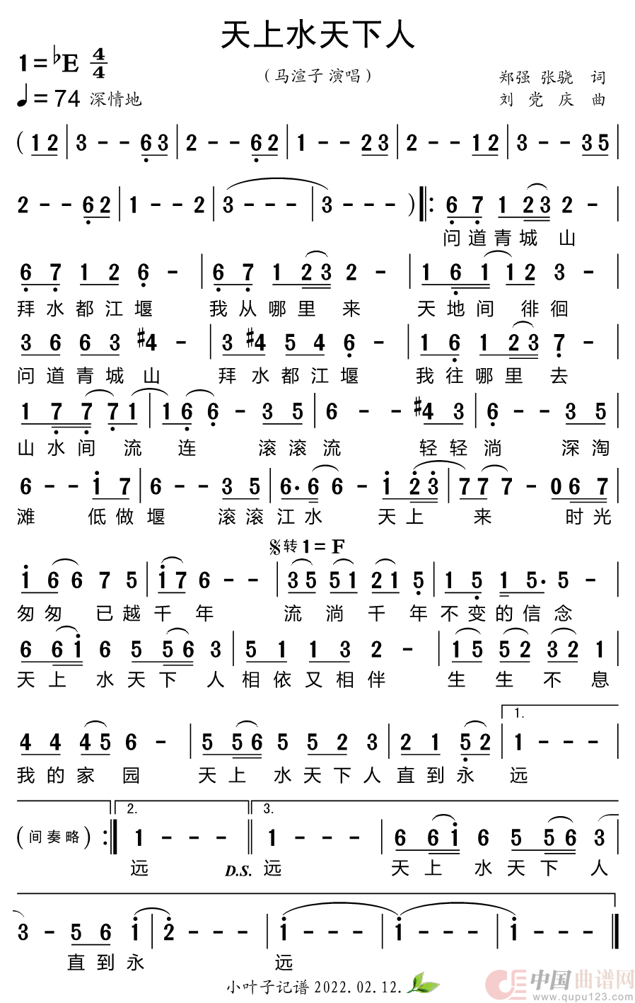 天上水天下人相关五线谱