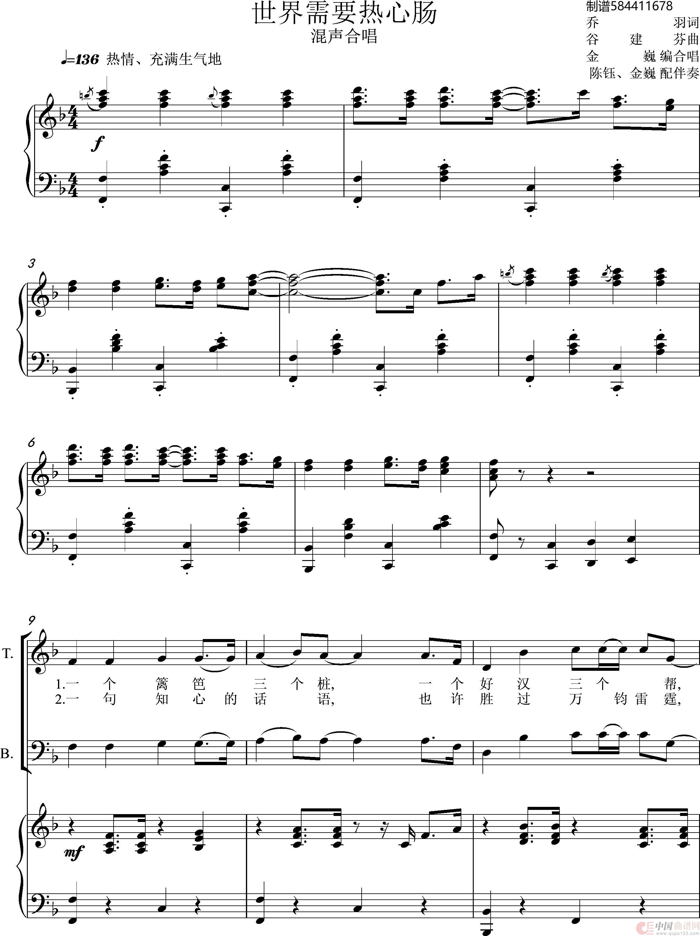 全世界人民团结紧(集体词 刘雪庵曲、五线谱)