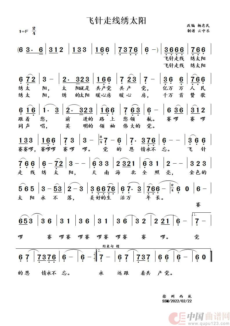 飞针走线绣太阳(歌曲)相关五线谱