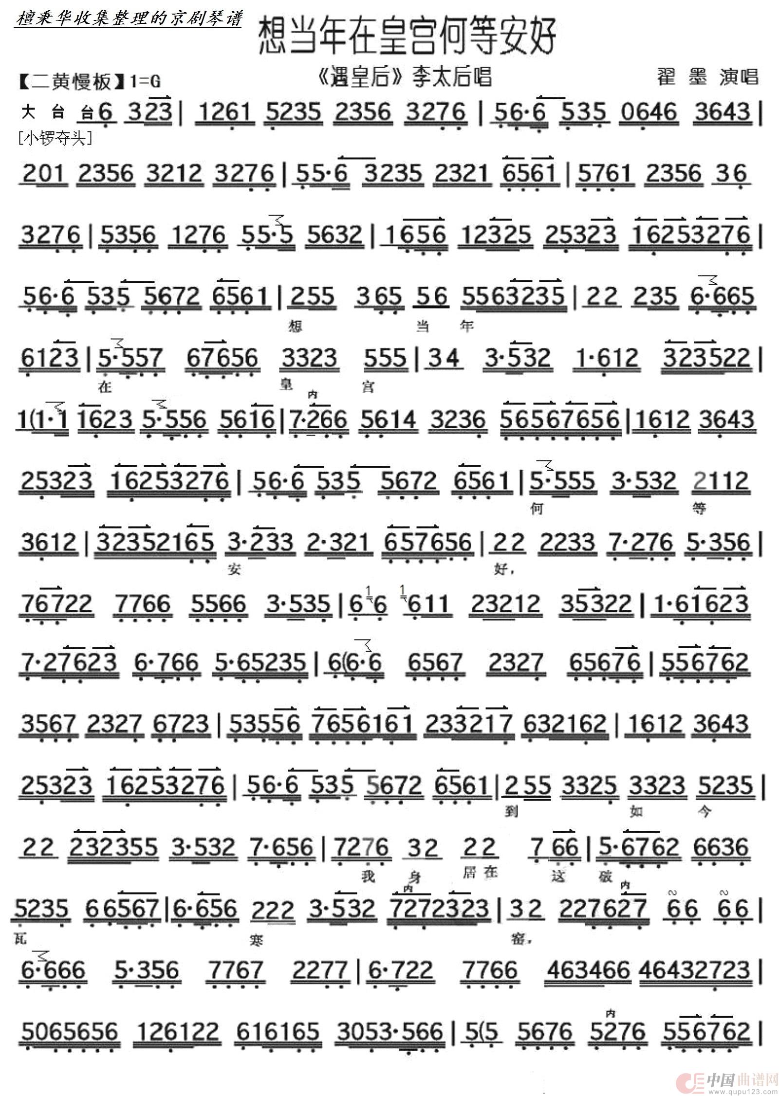 京剧《遇皇后》想当年在皇宫何等安好(京胡伴奏谱)