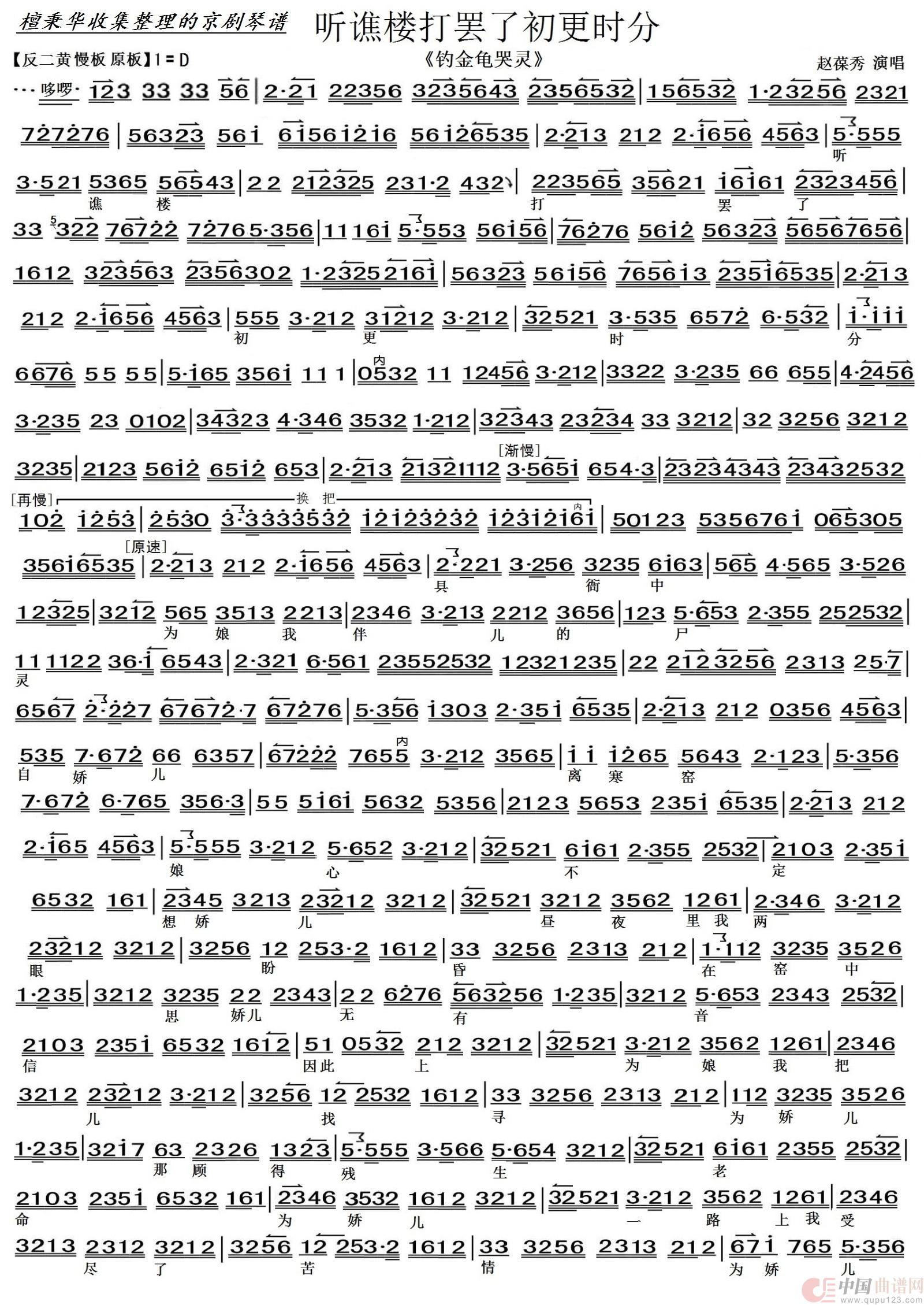 京剧《钓金龟哭灵》听谯楼打罢了初更时分(京胡伴奏谱)相关五线谱