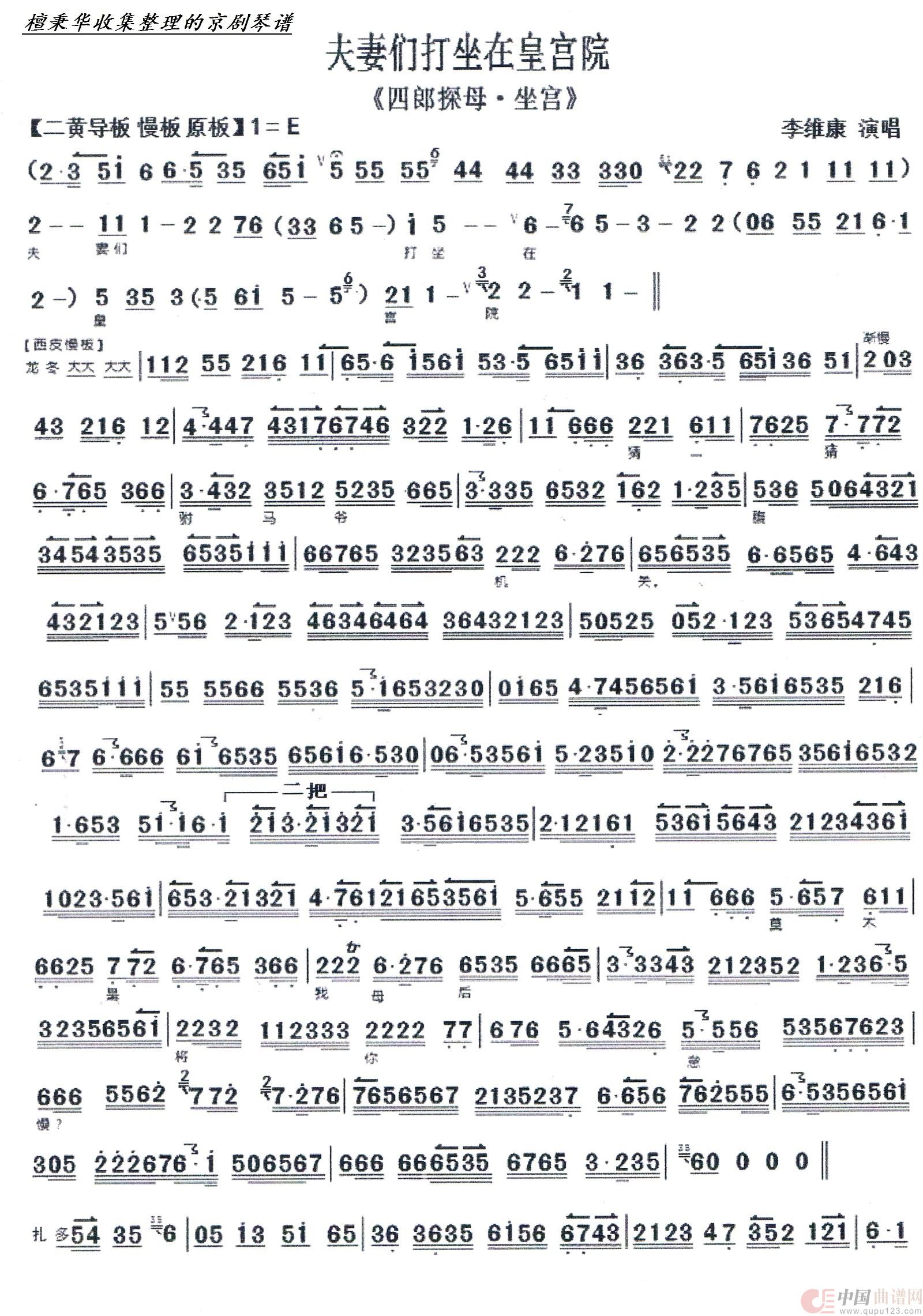 京剧《坐宫》夫妻们打坐在皇宫院(京胡伴奏谱)