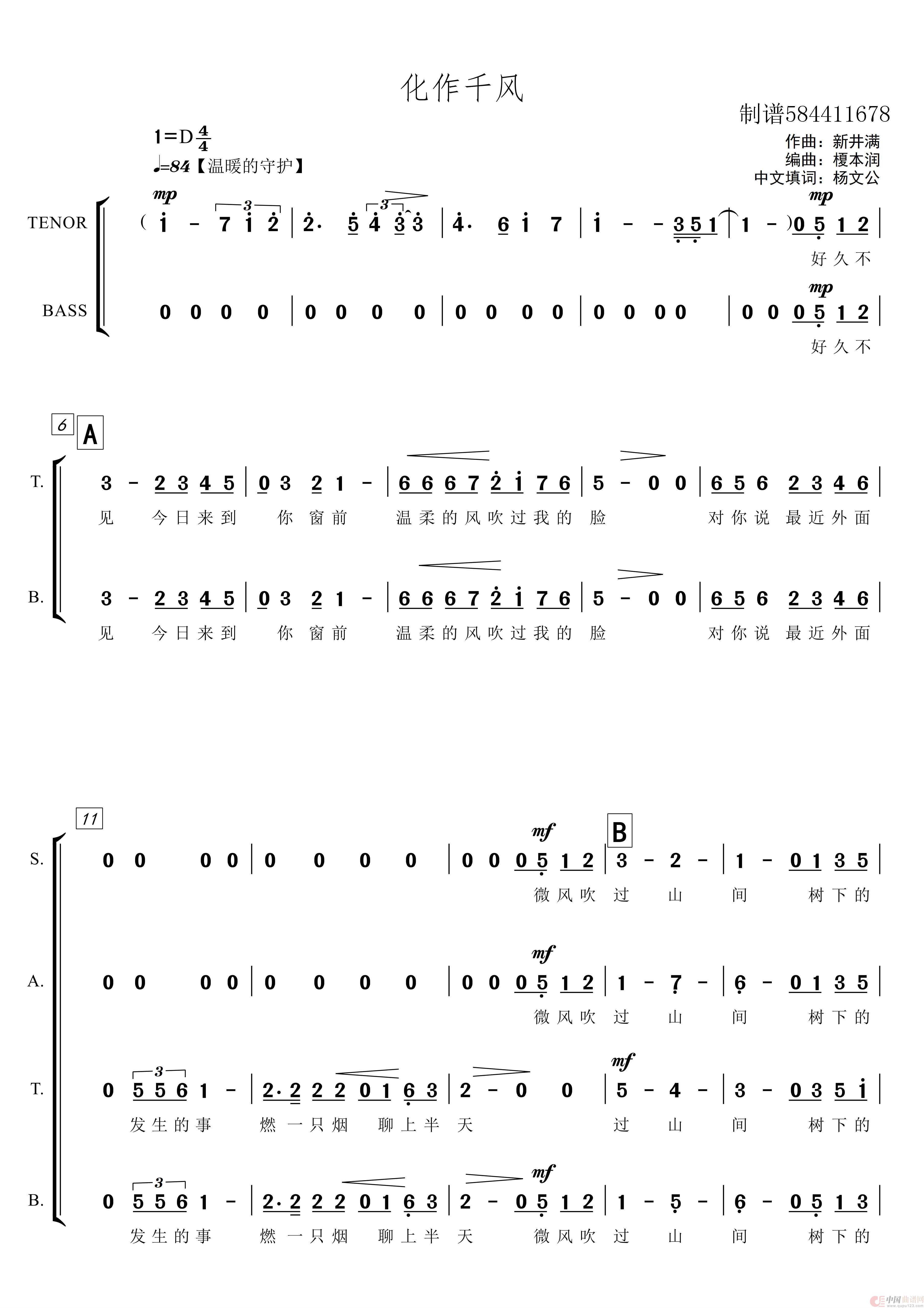 化作千风混声合唱谱相关五线谱