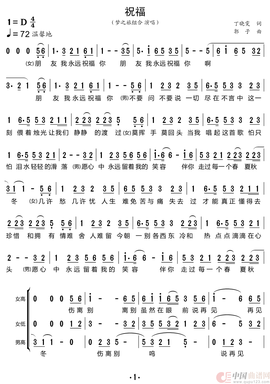 郭子曲谱推荐情愿刷牙歌(许常德词 郭子曲)矜持祝福(丁晓雯词 郭子曲)我是蒙古人(阿古拉泰词 郭子杰曲)妈妈的歌谣(刘长江词 郭子杰曲)祝福亲爱的你怎么不在身边(编配乐谱)祝福(张学友演唱版)美丽的锡林郭勒马嚼夜草(陆华军词 郭子杰曲)爱是一个圆(娃娃词 郭子曲)亲爱的你怎么不在我身边把我的喜悦与你分享原来你什么都不要原来你什么都不要忘记你,我做不到原来你什么都不想要祝福(丁晓雯词 郭子曲、编配乐谱)我那蔚蓝的故乡