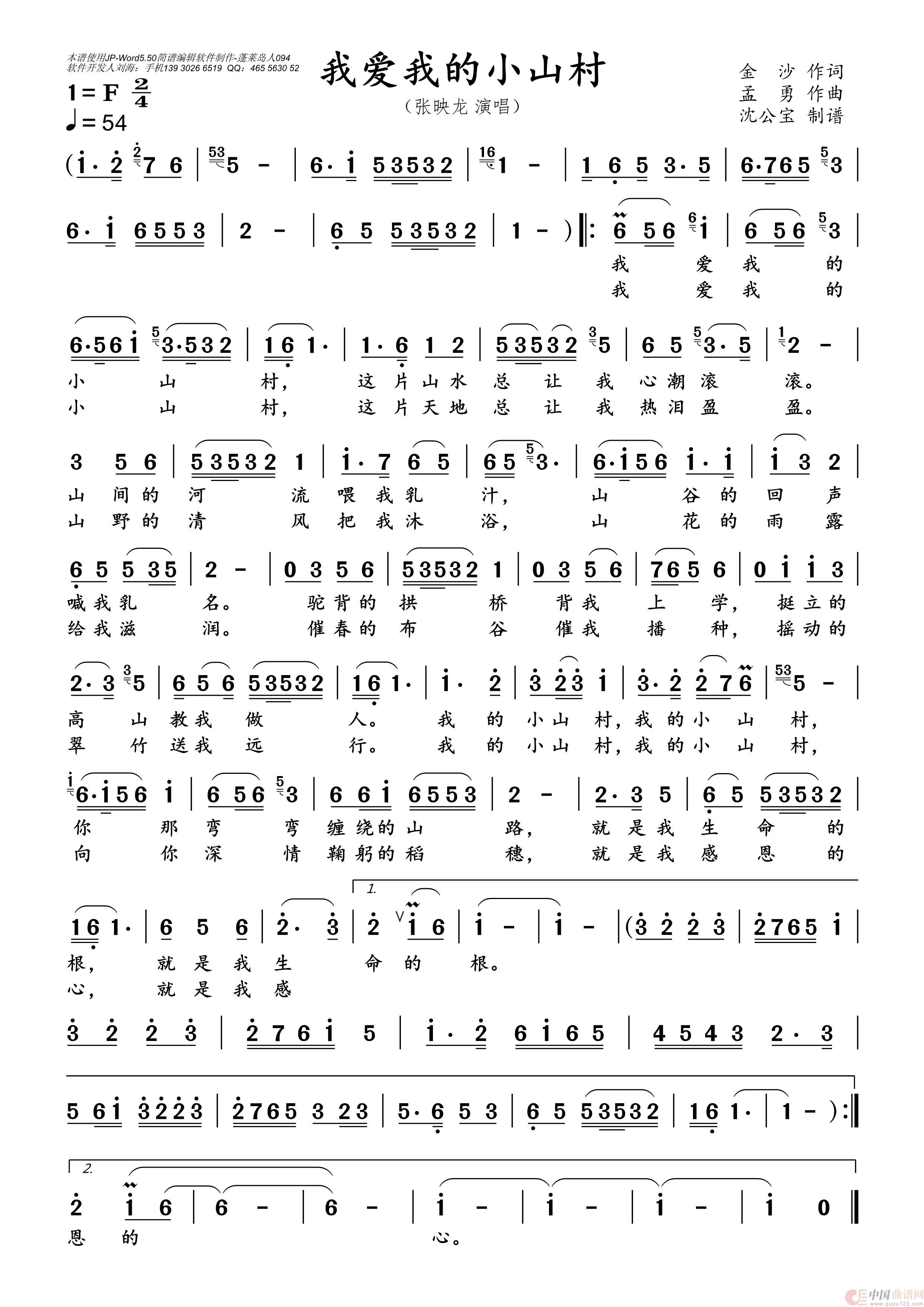 我爱我的小山村相关五线谱