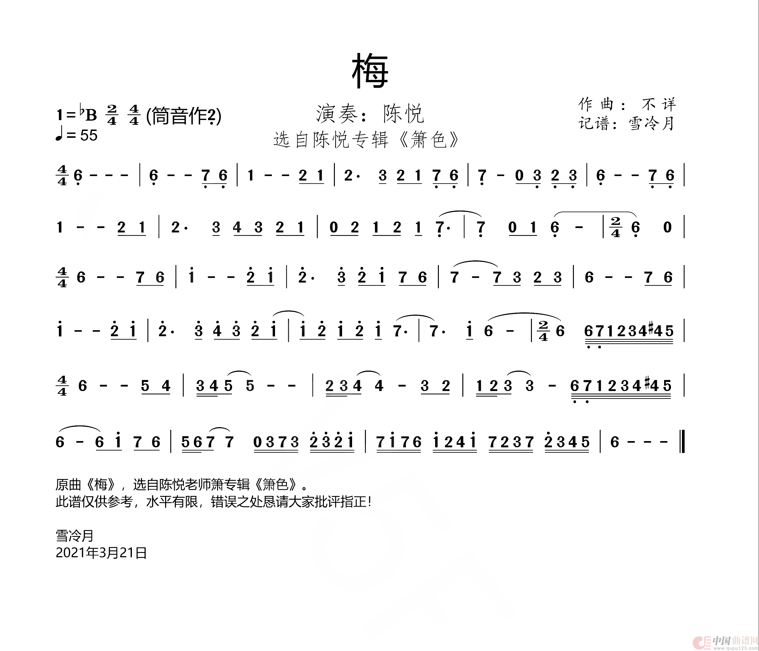 梅相关五线谱
