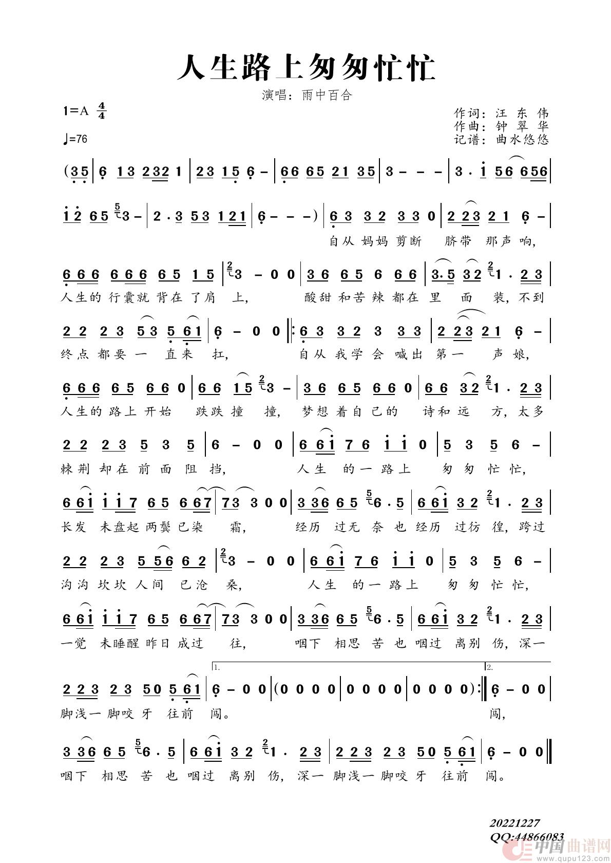钟翠华曲谱推荐真的好想哭为何狠心把我抛下活了一把年龄人生这条路好难闯心累了谁知道一生坎坷的路各有各的难心静自然凉岁月的云烟笑饮人生一杯酒问银河忘不掉青梅竹马心被冰封存半生的惆怅敢问岁月饶过谁已不再年轻一生坎坷路人生被岁月洗劫喝一杯岁月的酒善良的人上天眷顾