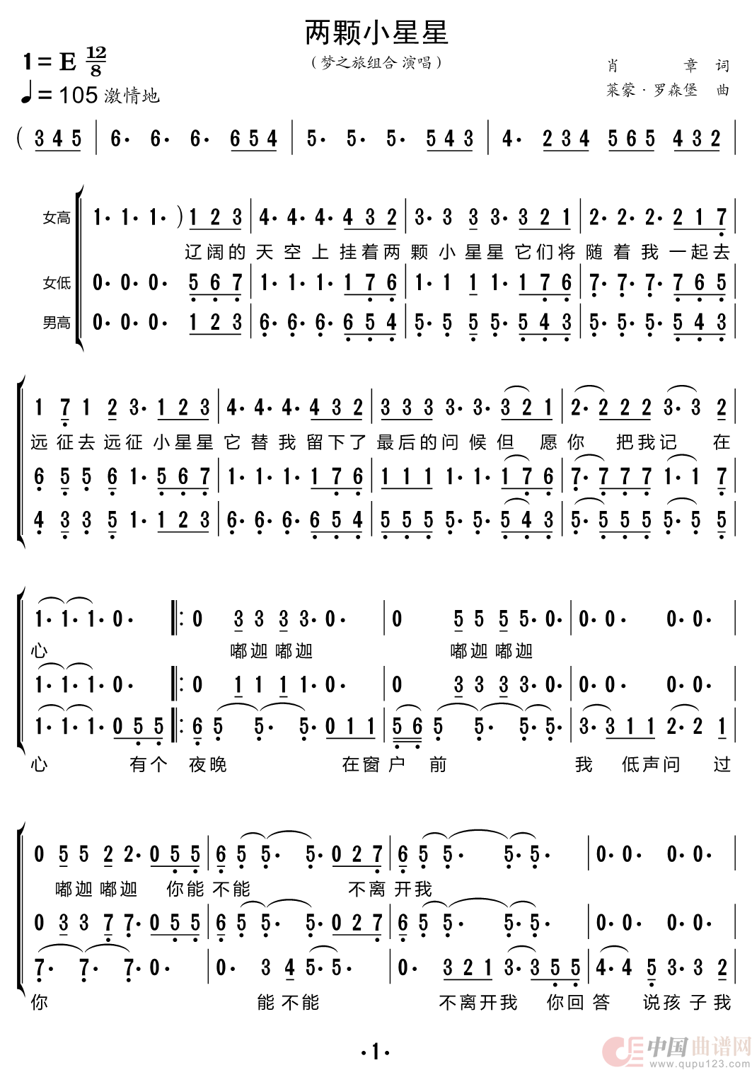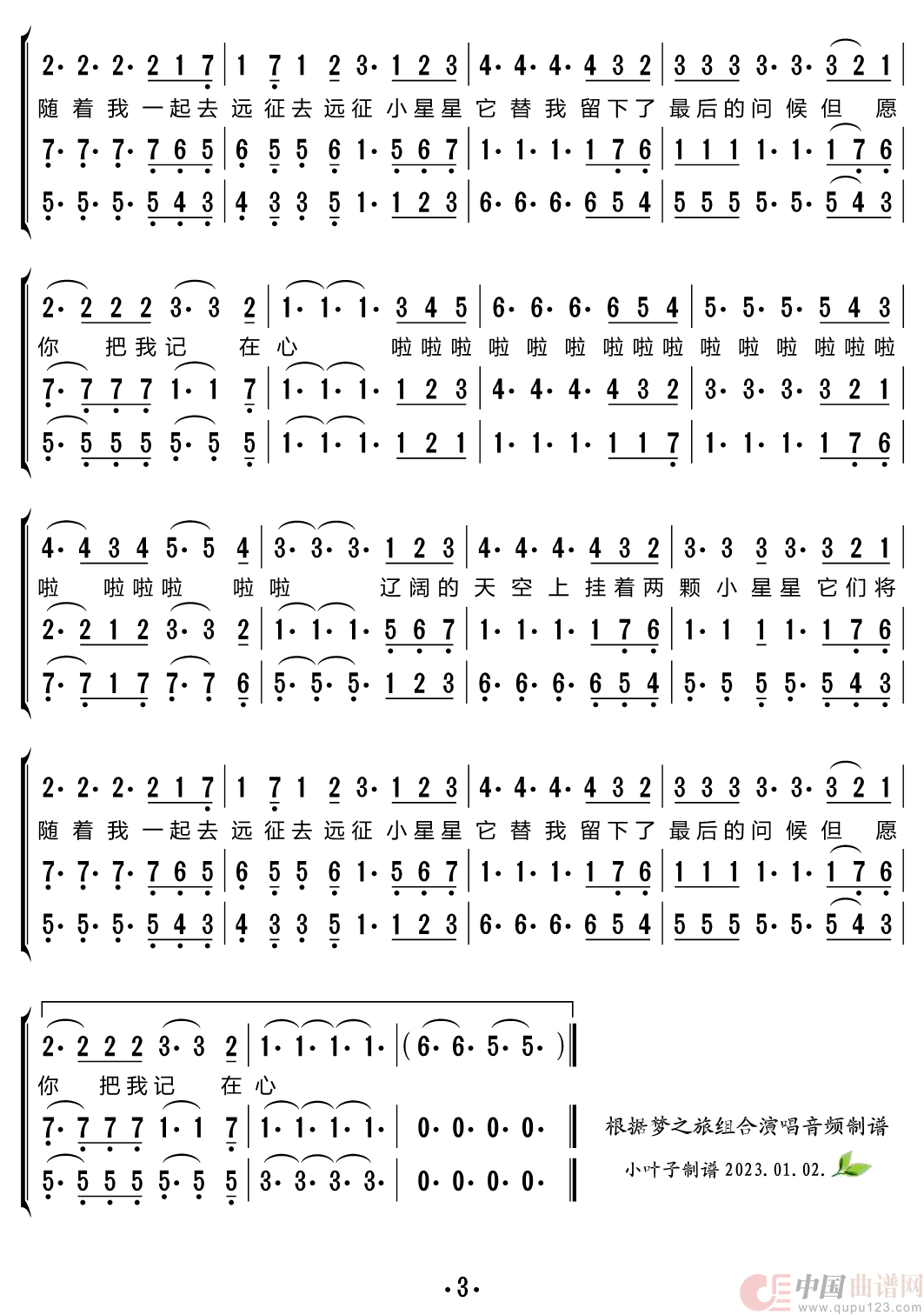 两颗小星星(梦之旅组合)相关五线谱