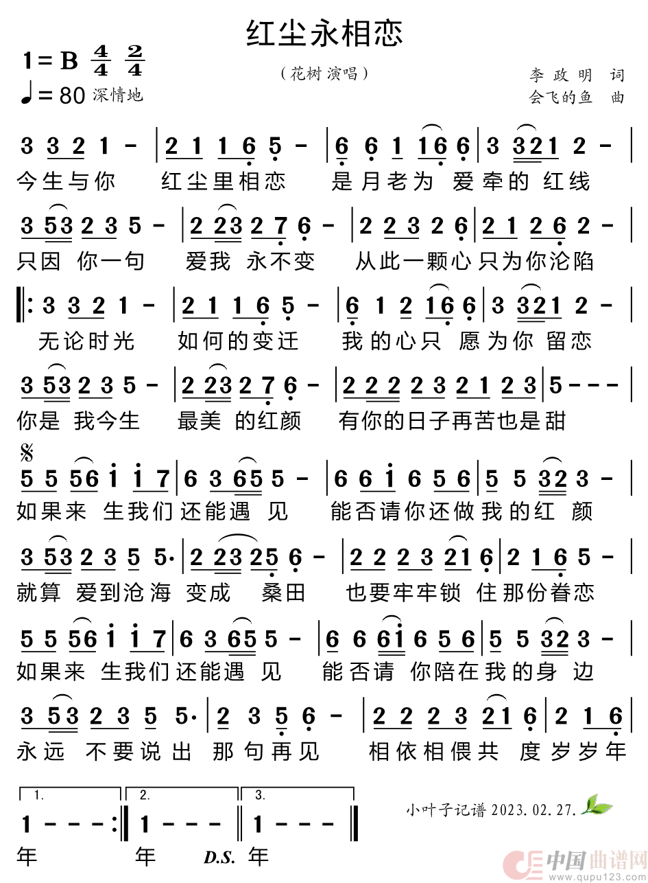 红尘永相恋相关五线谱