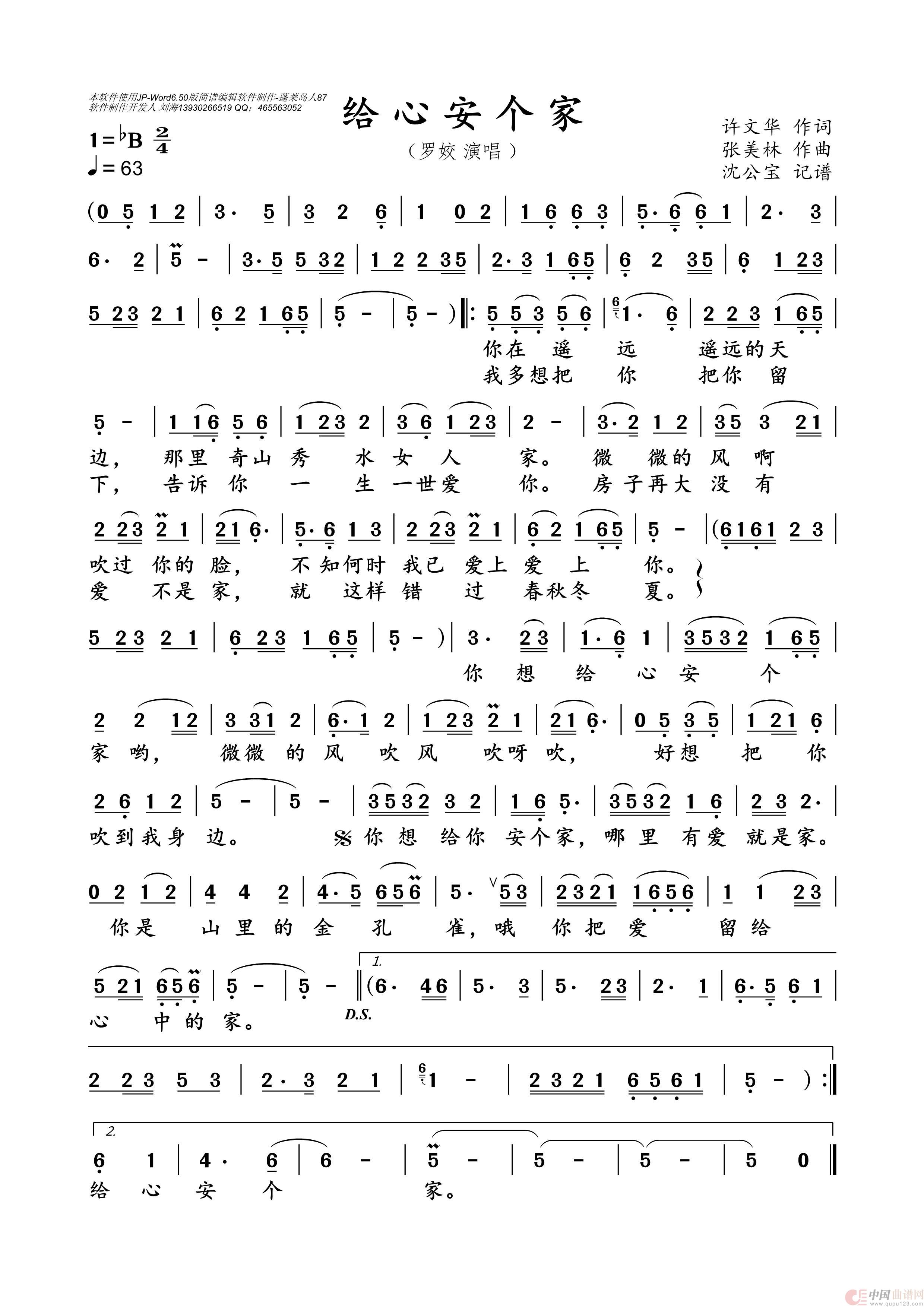 给心安个家相关五线谱