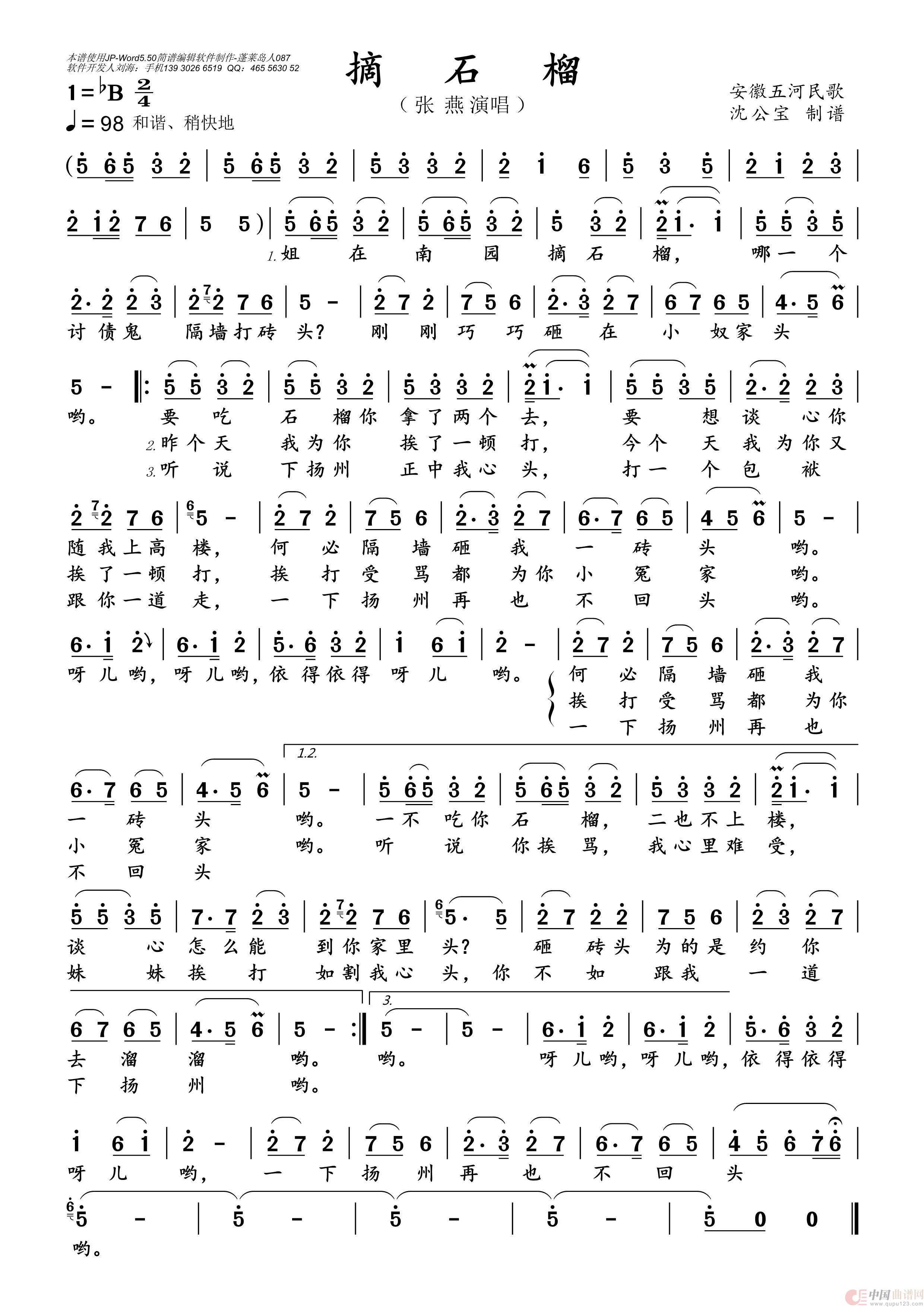 摘石榴相关五线谱