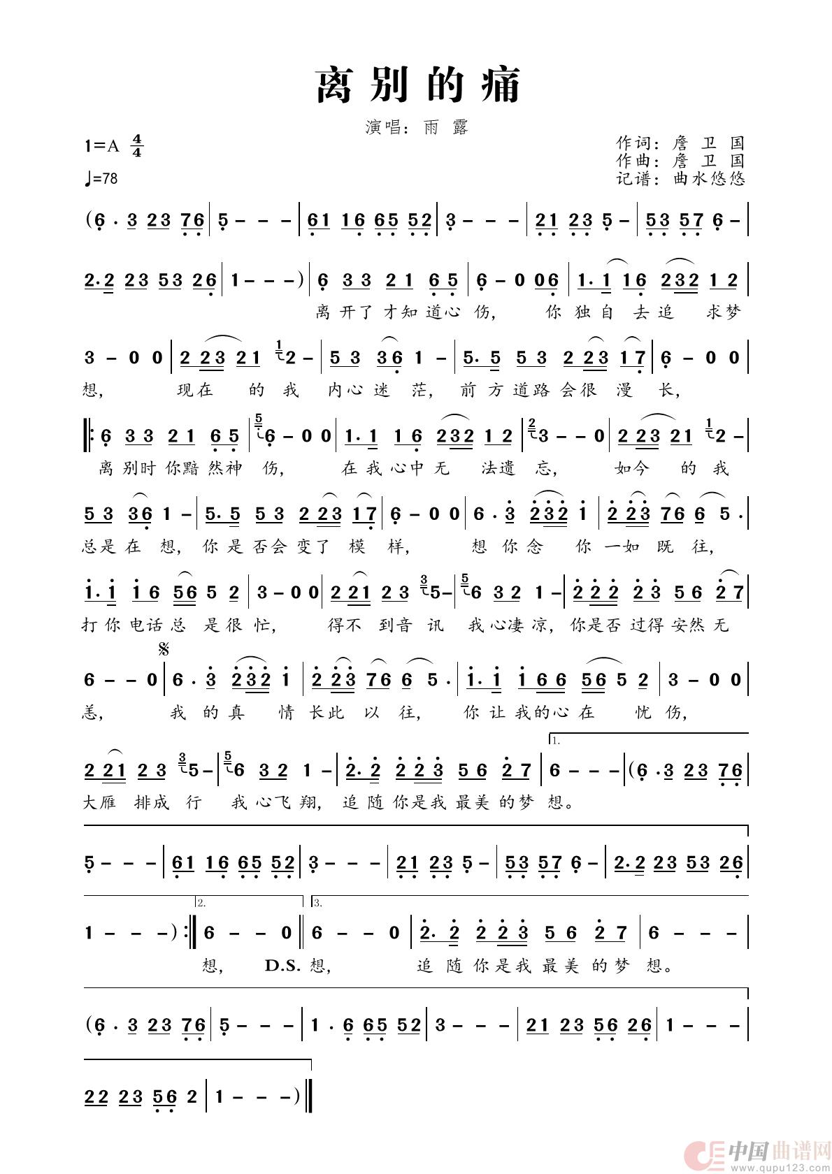 离别的痛相关五线谱