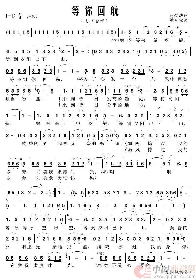 等你回航相关五线谱