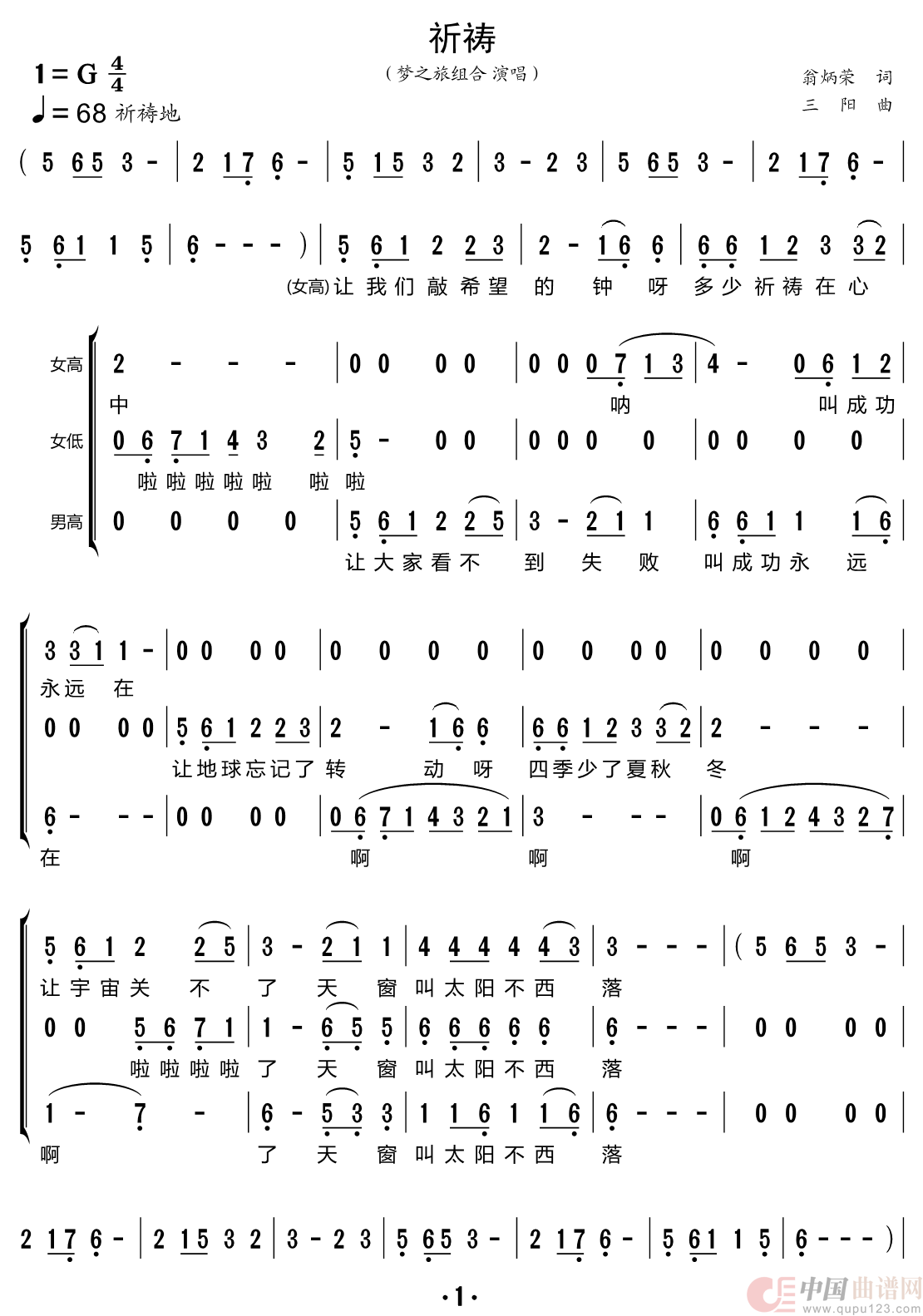 祈祷(翁炳荣词 三阳曲、胡新德配和弦版)