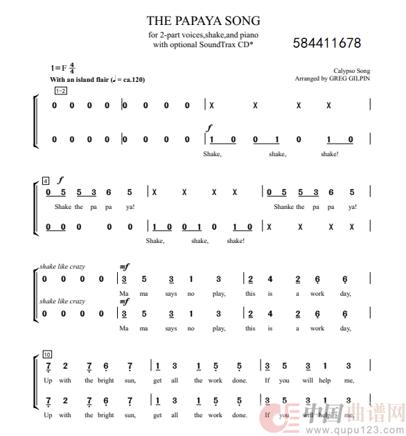 The Papaya Song 木瓜歌 二声部合唱简谱相关五线谱