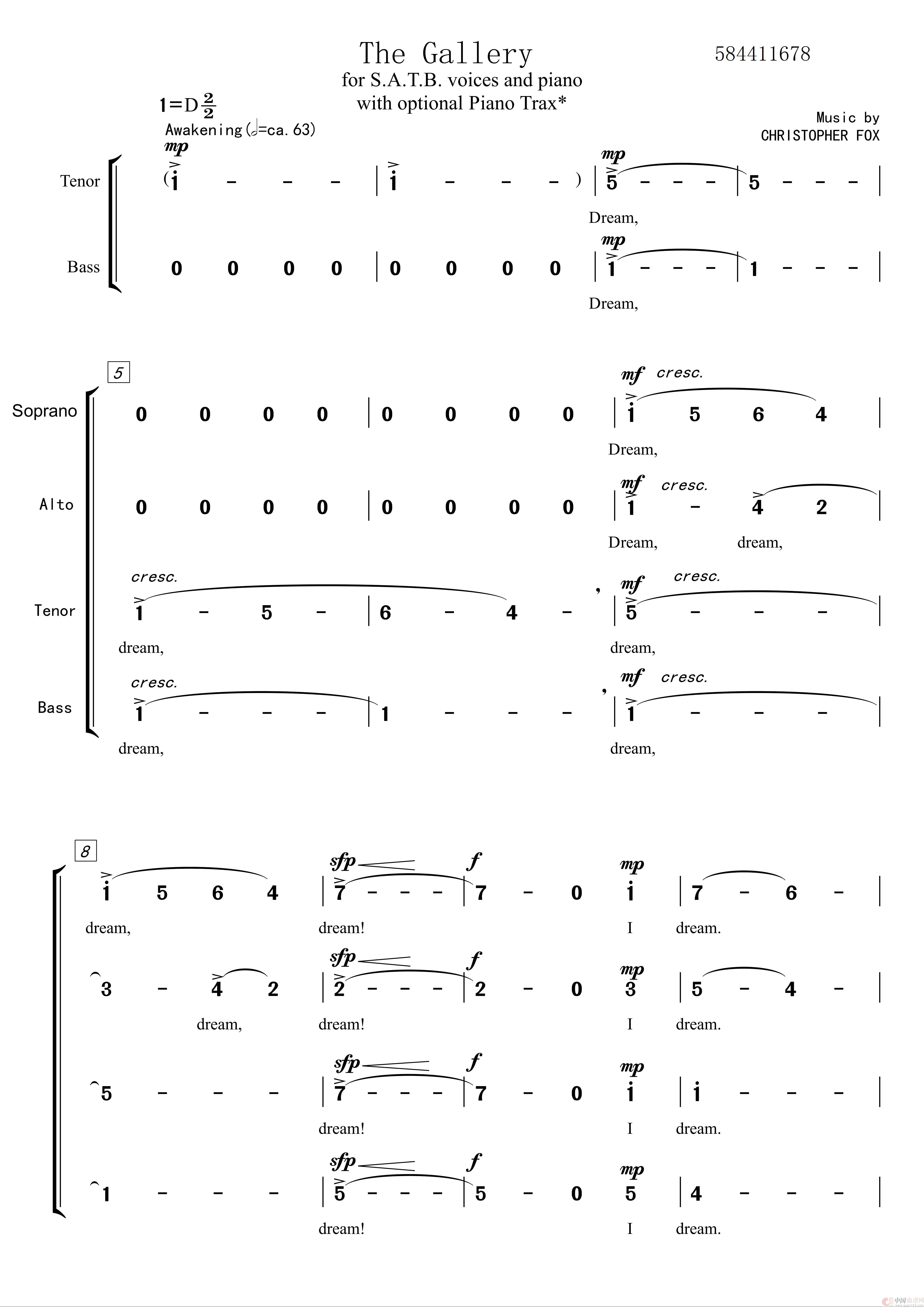 THe Gallery 混声四部合唱谱相关五线谱