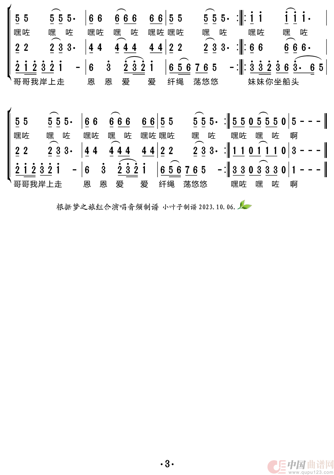 纤夫的爱(梦之旅组合)相关五线谱