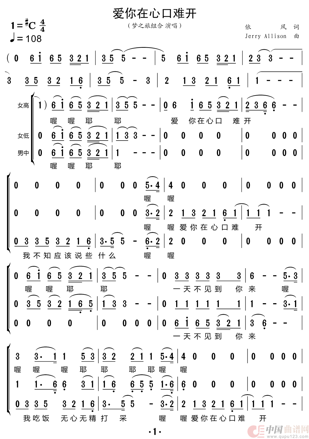 爱你在心口难开(梦之旅组合)相关五线谱