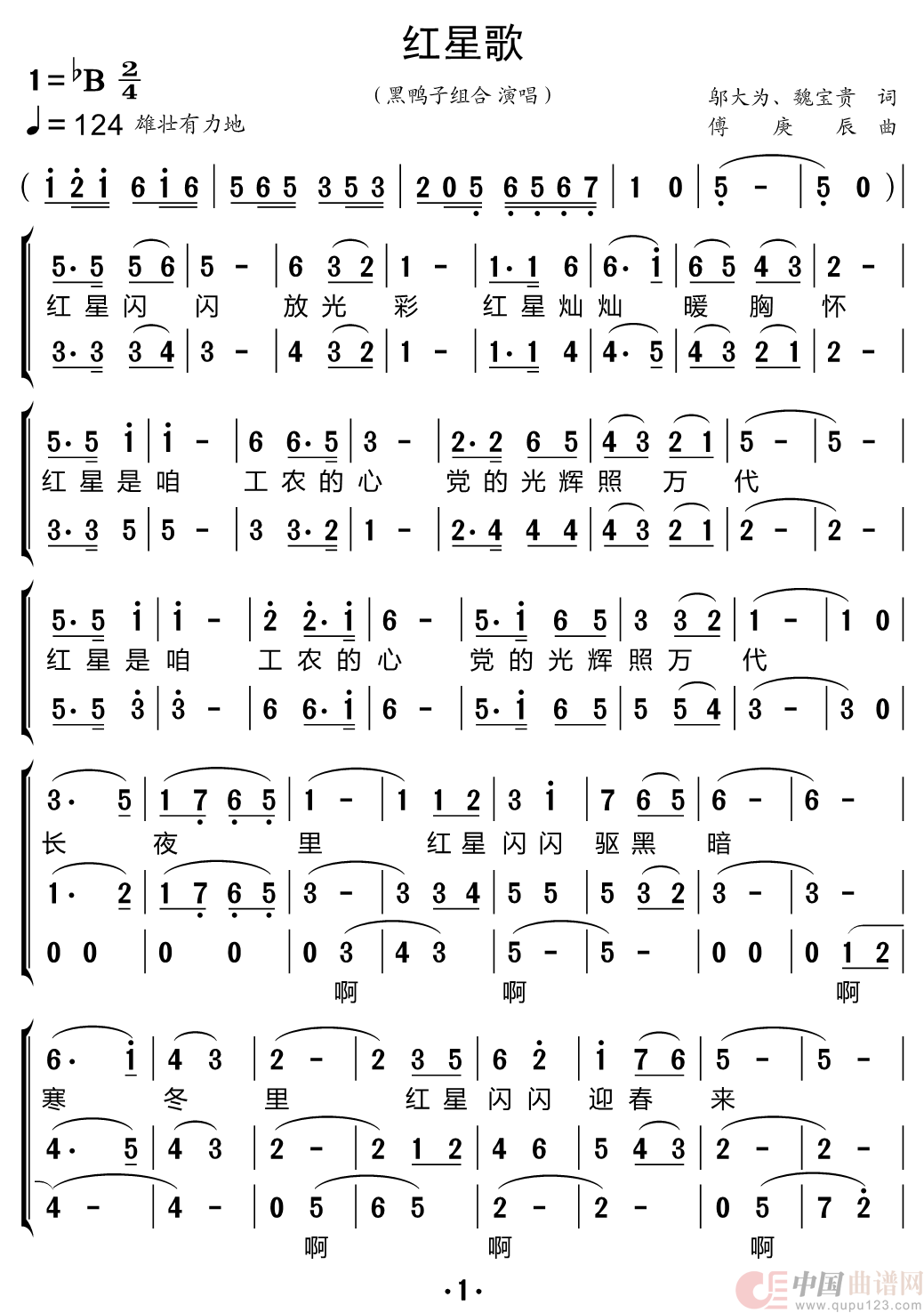 傅庚辰曲谱推荐希望(胡乔木词 傅庚辰曲)这双脚不稀奇(歌剧《星光啊星光》选曲)映山红红星歌(电影《闪闪的红星》主题歌、正谱)跃马扬鞭走天山军歌金曲:红星照我去战斗记遗言映山红(李志清编二部合唱)《南泥湾》与《毛主席的话儿记心上》(亦弛组编)(弹拨乐曲)地道战(电影《地道战》主题曲)地道战映山红(男女二重唱)诉衷情(声乐套曲《航天之歌》之一)映山红(意寓云天整理版)放开我,妈妈!(故事片《枫》插曲)映山红(李志清编合唱)青春之歌(电影《枫》插曲)映山红春风吹又生(电视剧《卢沟桥》插曲)月亮,月亮(景慕逵词 傅庚辰曲)