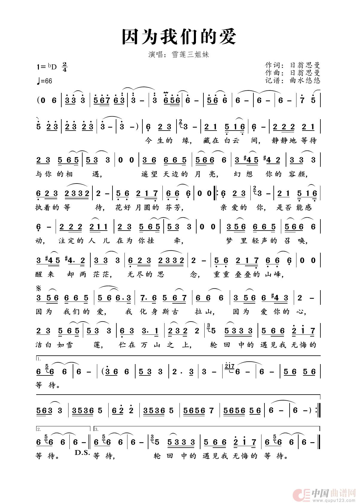 因为我们的爱相关五线谱