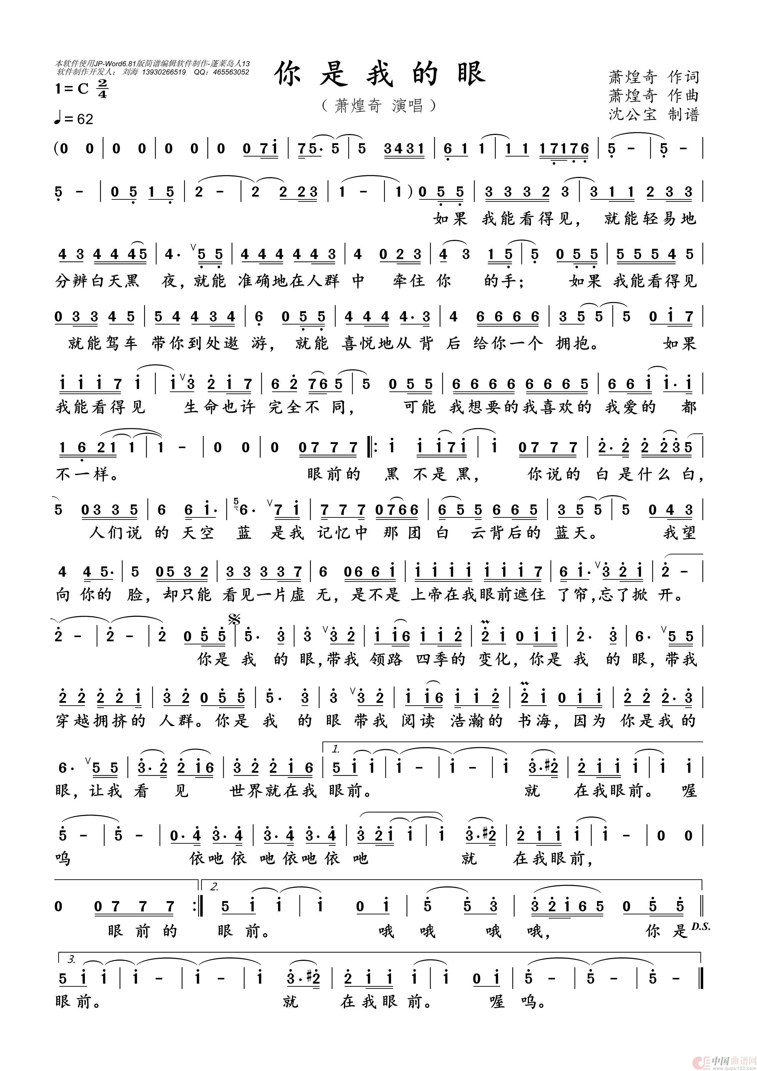 你是我的眼相关五线谱