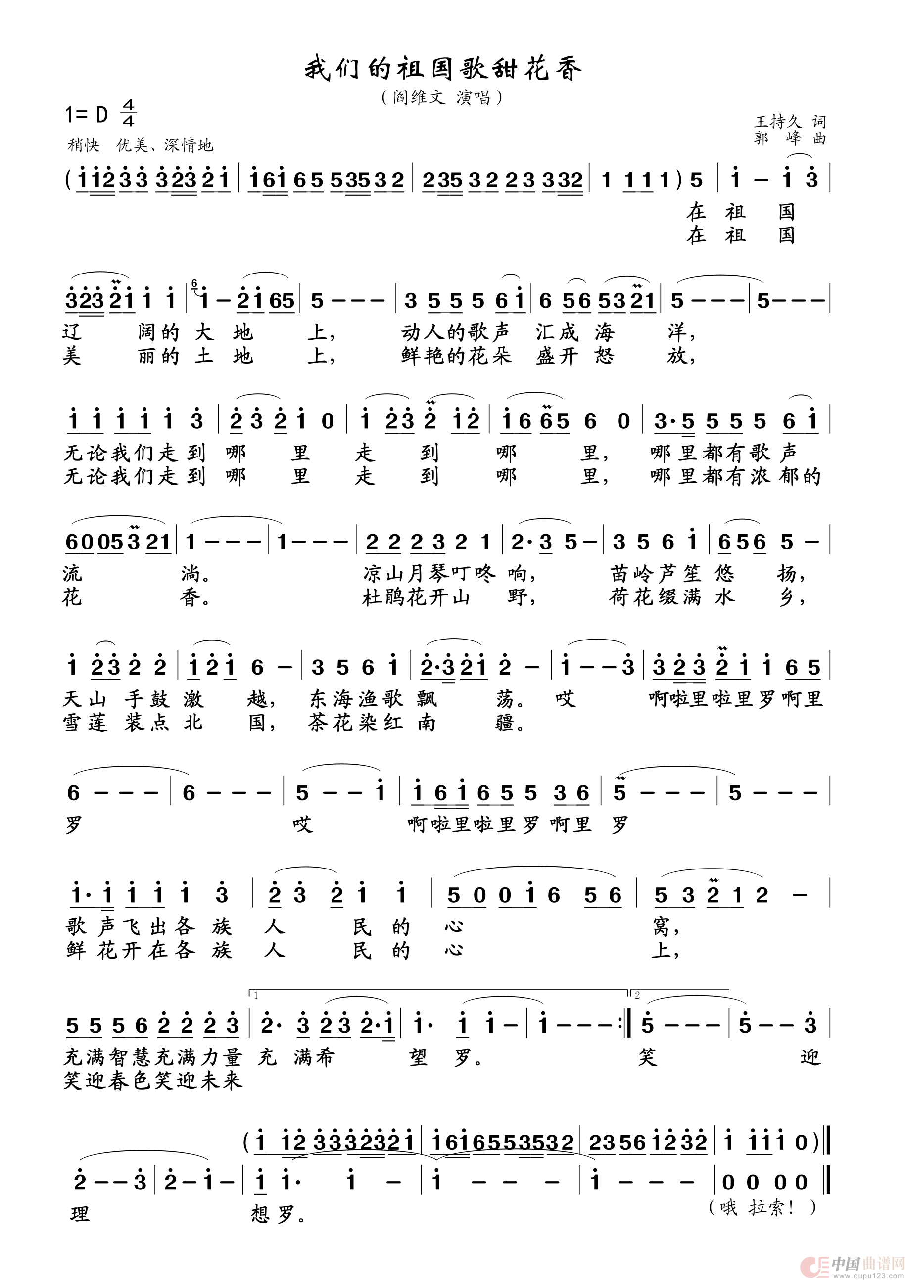 郭峰曲谱推荐今生难得有情人(郭峰词曲)让我再看你一眼移情别恋中国(郭峰词 郭峰曲)甘心情愿(郭峰 词曲)甘心情愿我们的祖国歌甜花香让世界充满爱(完整版)永远(郭峰词曲)绿星歌(电视片《绿星之邦》主题曲)心中的星(郭峰词曲)翼情我们是朋友(郭峰词曲)今夜属于你永远(郭峰 词曲)心会跟爱一起走我们的祖国歌甜花香永远让世界充满爱(老人适用)道路(郭峰词曲)