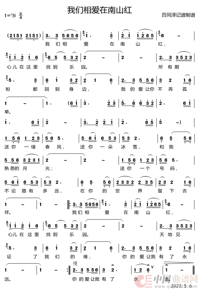 我们相爱在南山红相关五线谱
